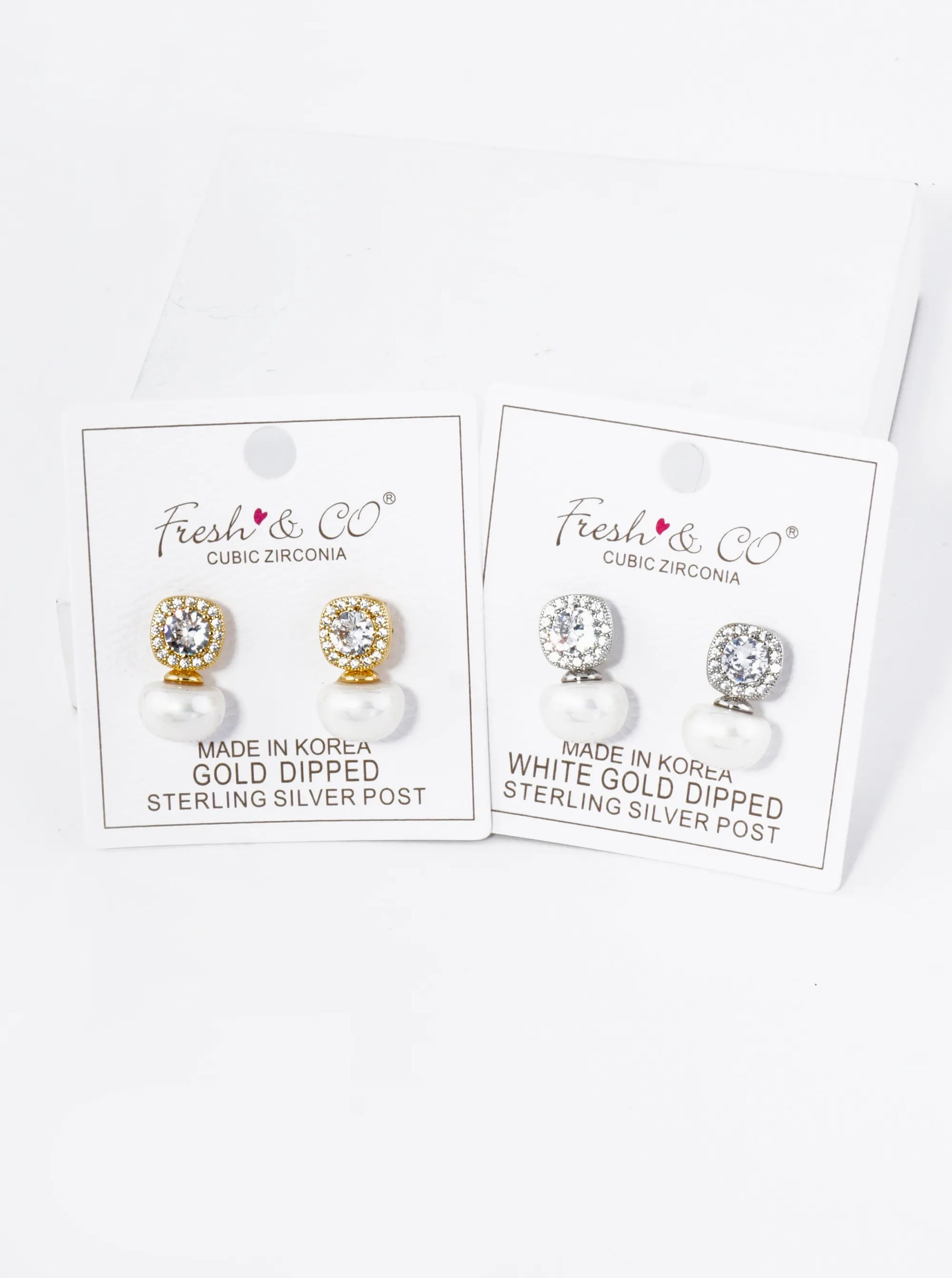 18K Gold Dipped Pearl Drop Cubic Zirconia Stud Earrings