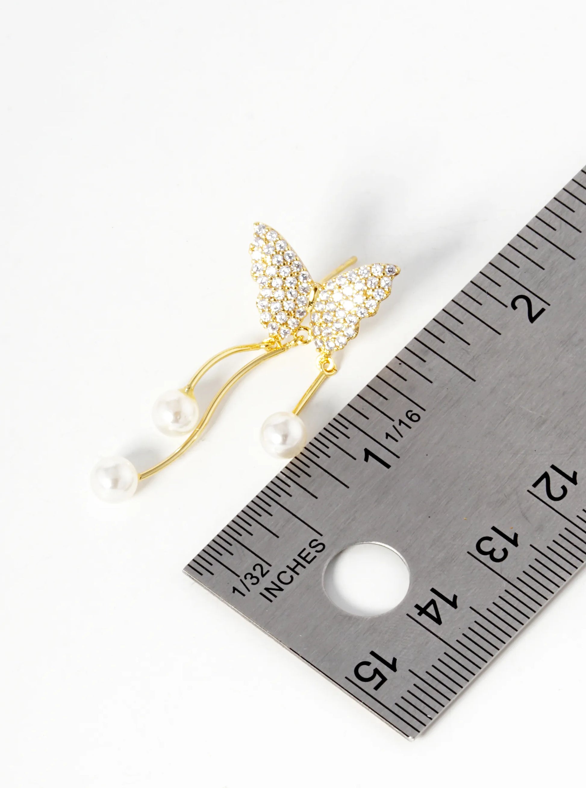 18K Gold Dipped Pearl Drop CZ Pave Butterfly Dangle Earrings