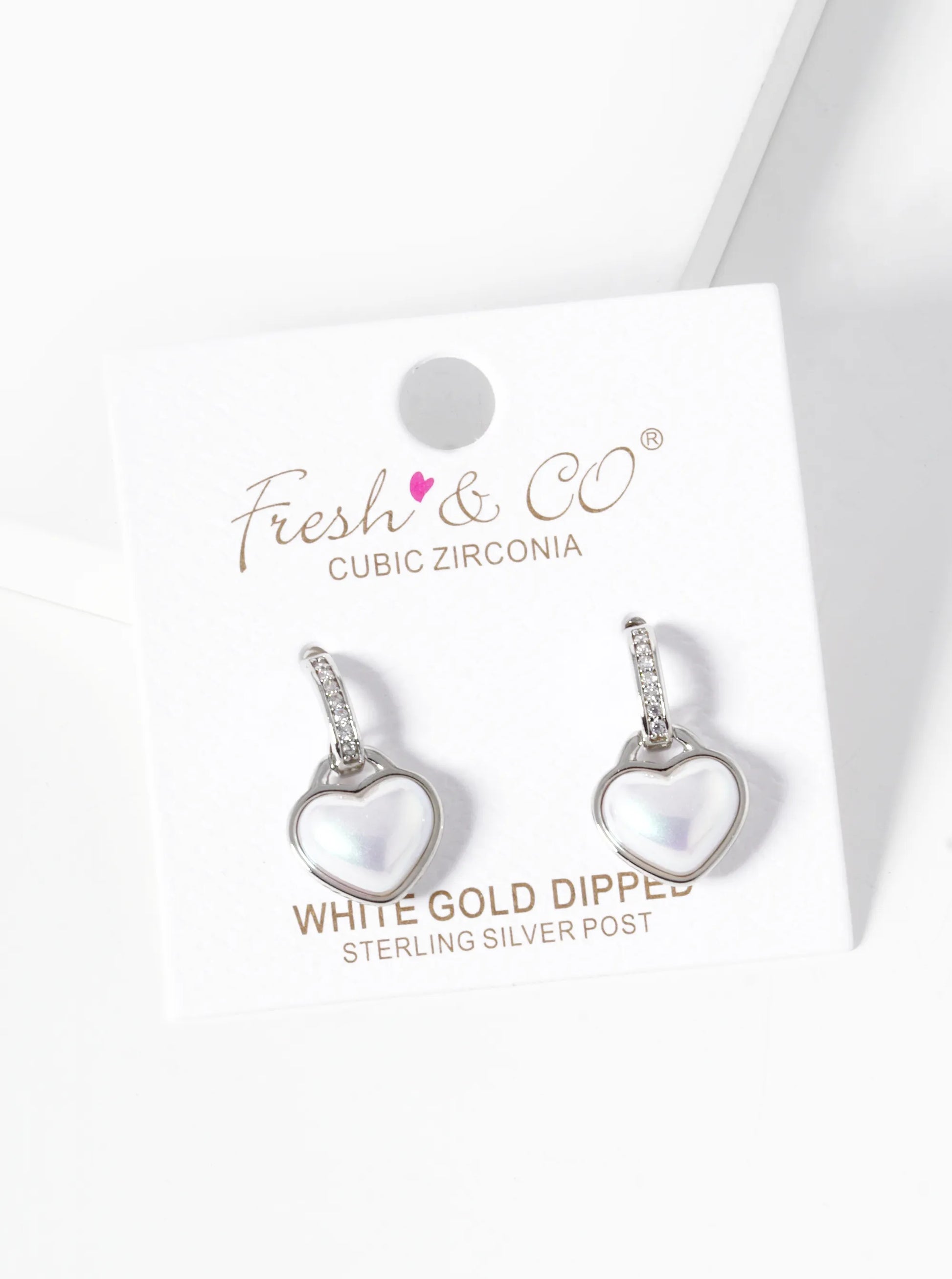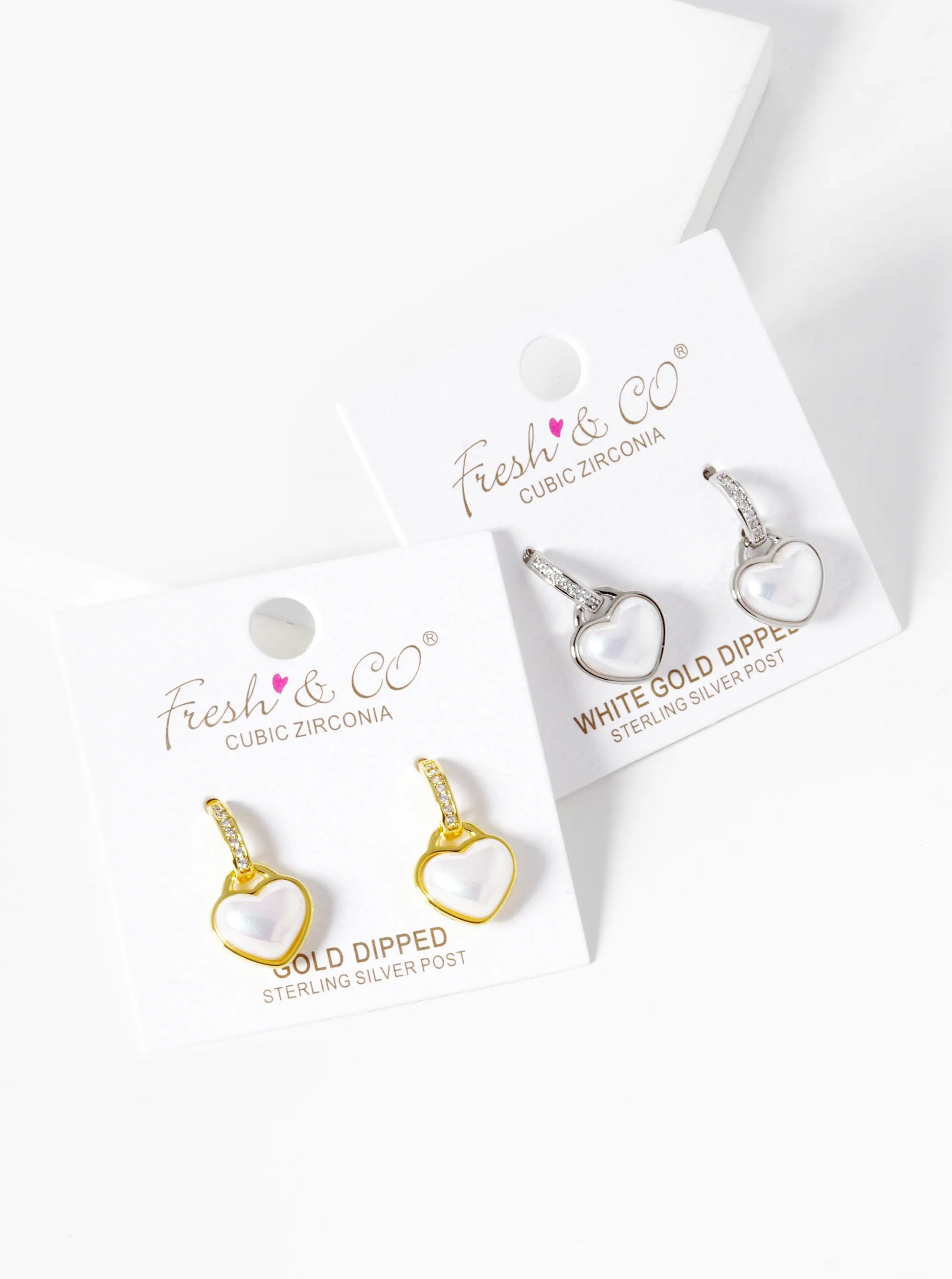 18K-Gold-Dipped Pearl Heart CZ Pave Stud Earrings
