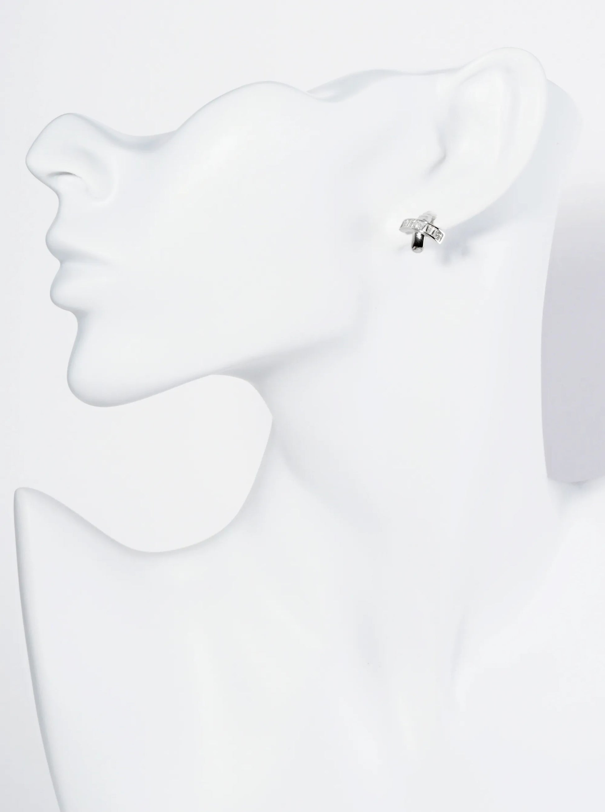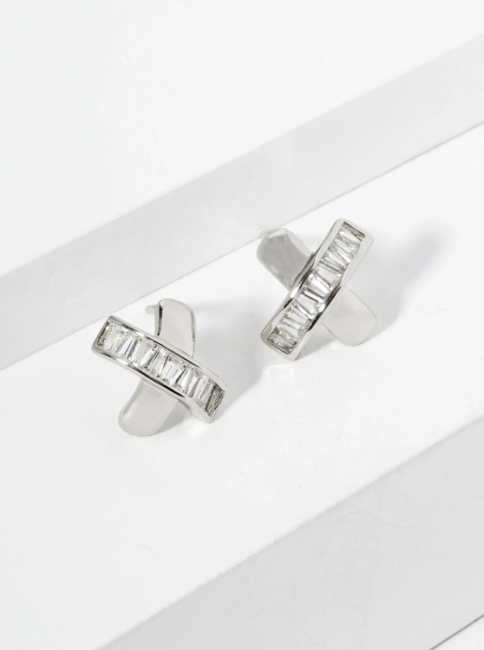 The Earrings Are A Striking Blend Of Modern Design And Timeless Elegance. Each Earring Features A Bold X Shape, With Clean Lines And A Contemporary Aesthetic. At The Center Of The X, A Brilliant Square Cubic Zirconia (CZ) Stone Is Embedded, Adding A Touch Of Sparkle And Sophistication.