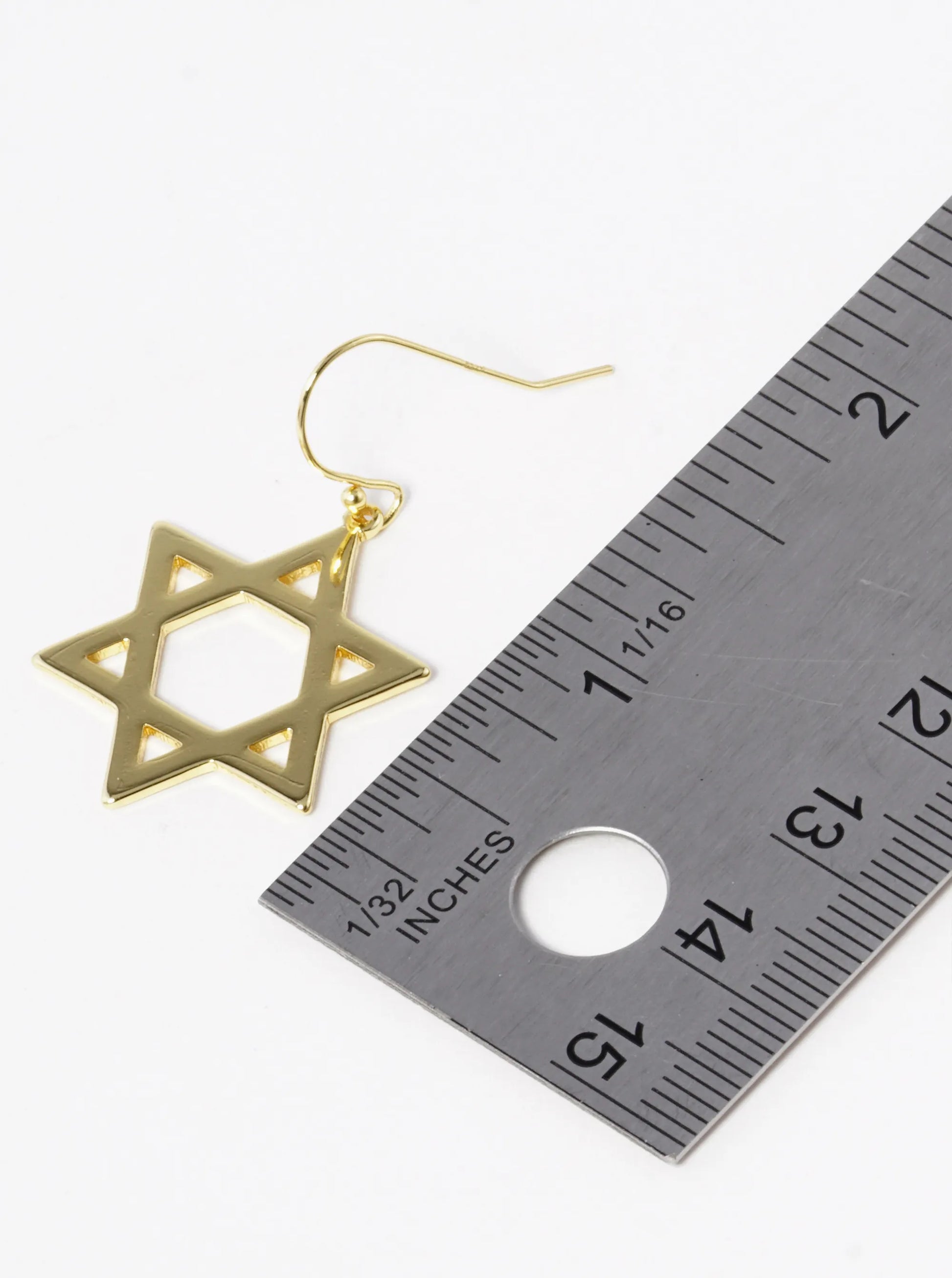 18K-Gold-Dipped Star Of David Dangle Drop Earrings