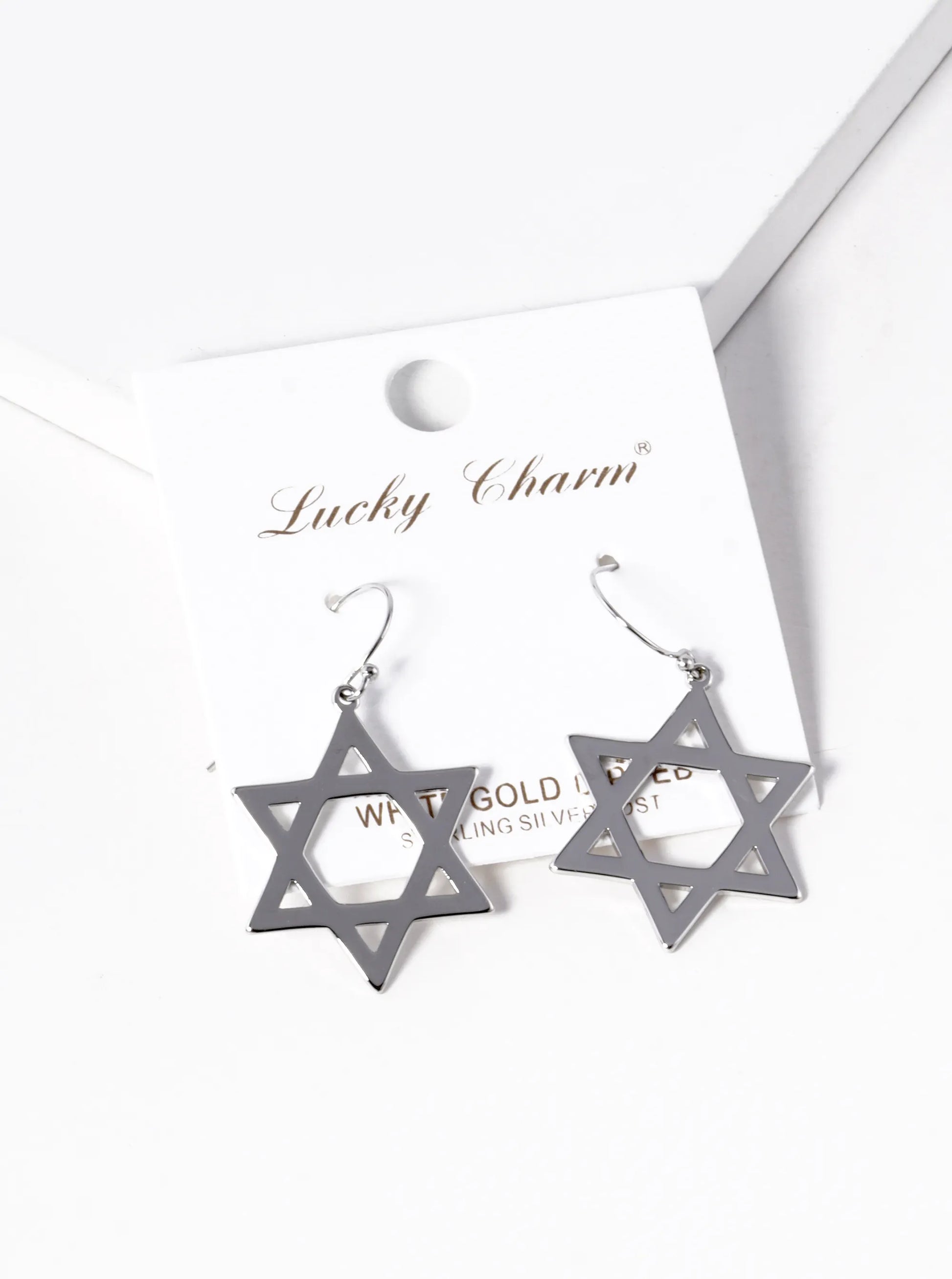 Add A Touch Of Glam To Your Collection With These Star Of David Dangle Drop Earrings. Perfect For Any Season, These Earrings Are Sure To Delight Customers With Their Delicate Material And Classic Color, Making Them A Must-have In Any Boutique.