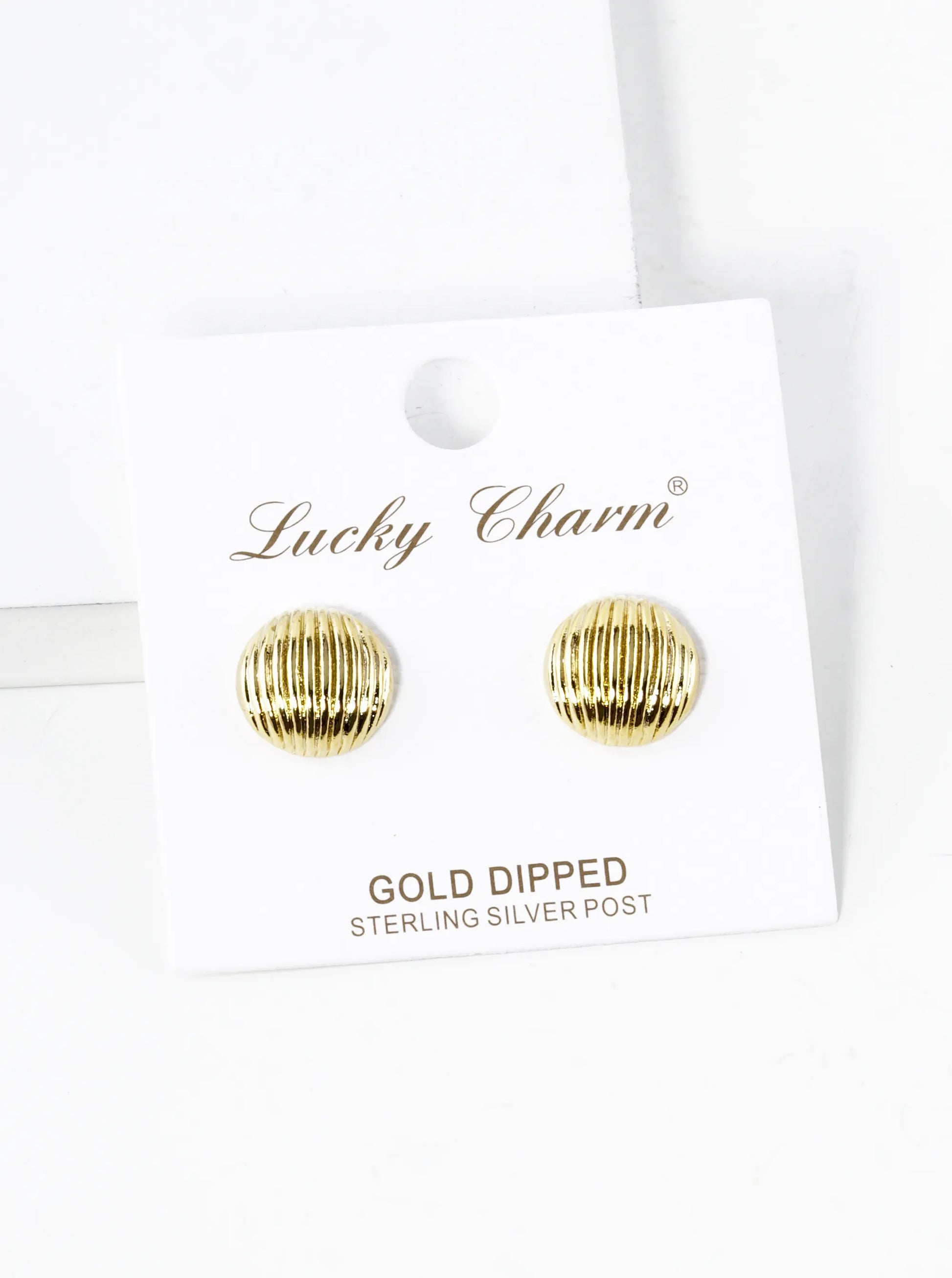 18K Gold Dipped Textured 12mm Button Stud Earrings