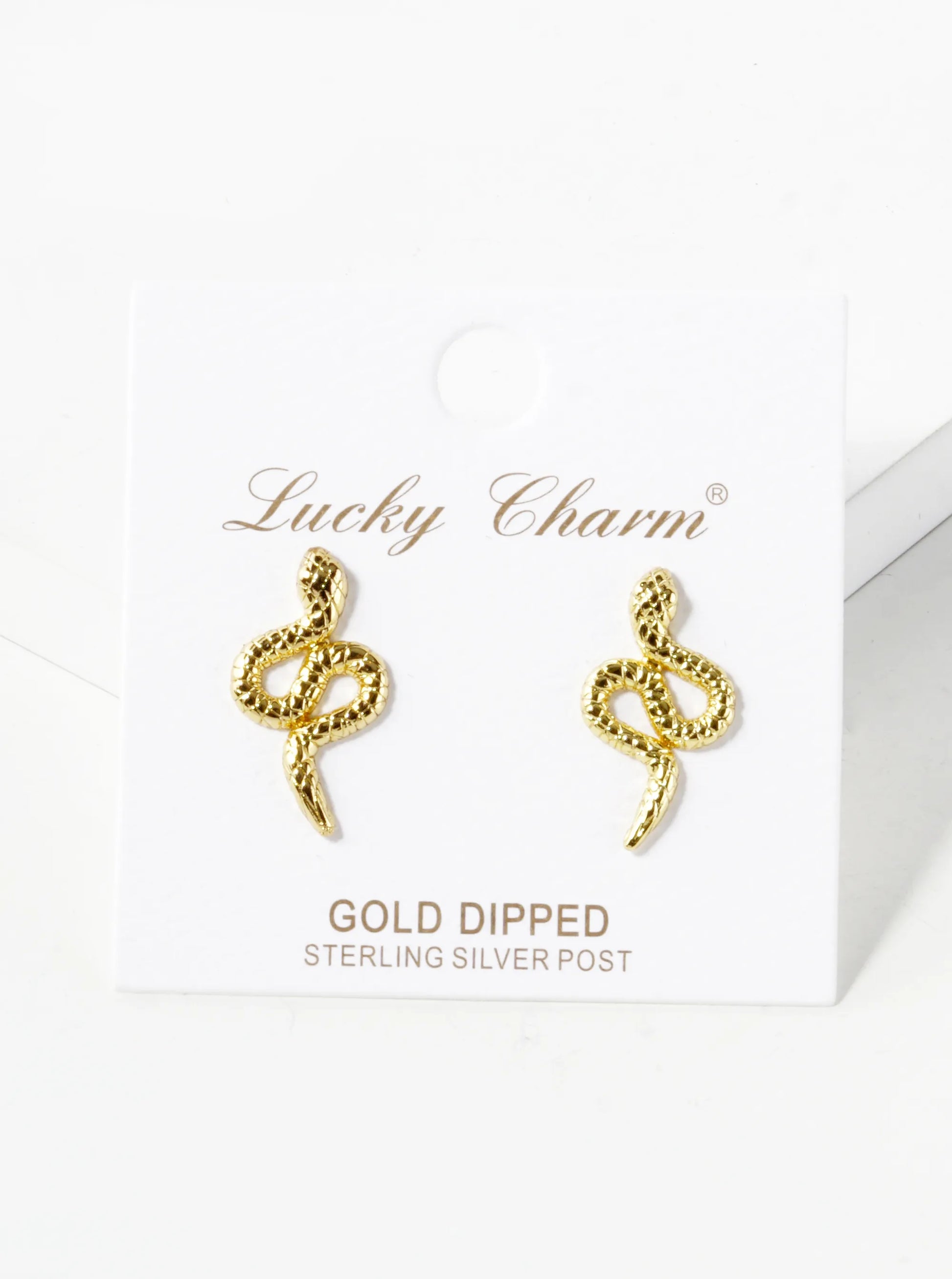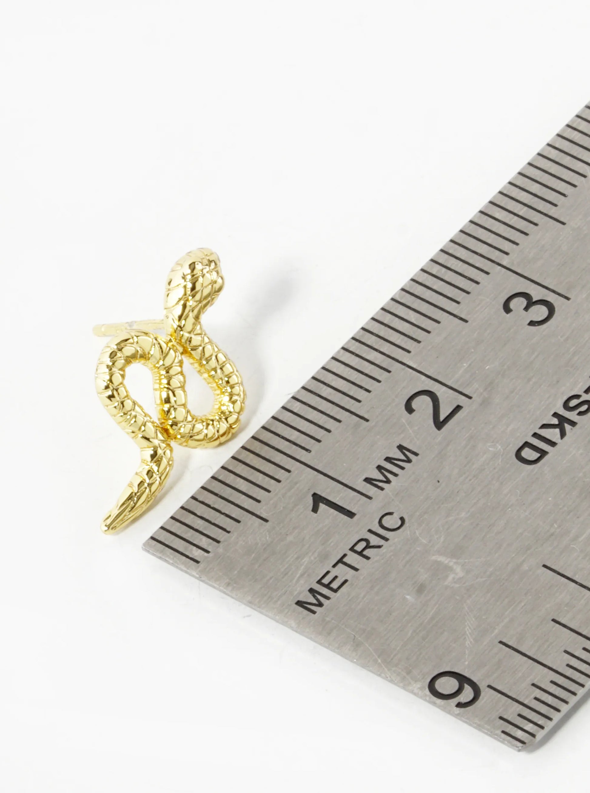 18K Gold Dipped Textured 20mm Snake Stud Earrings