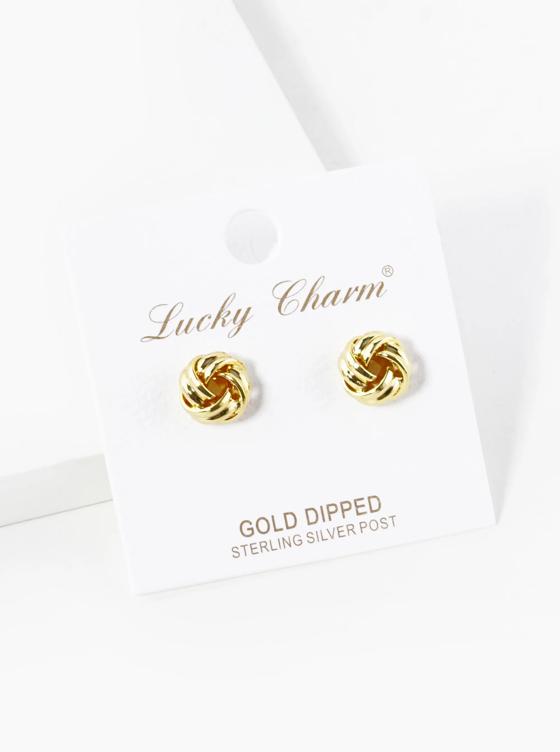 18K Gold Dipped Textured 9mm Love Knot Stud Earrings