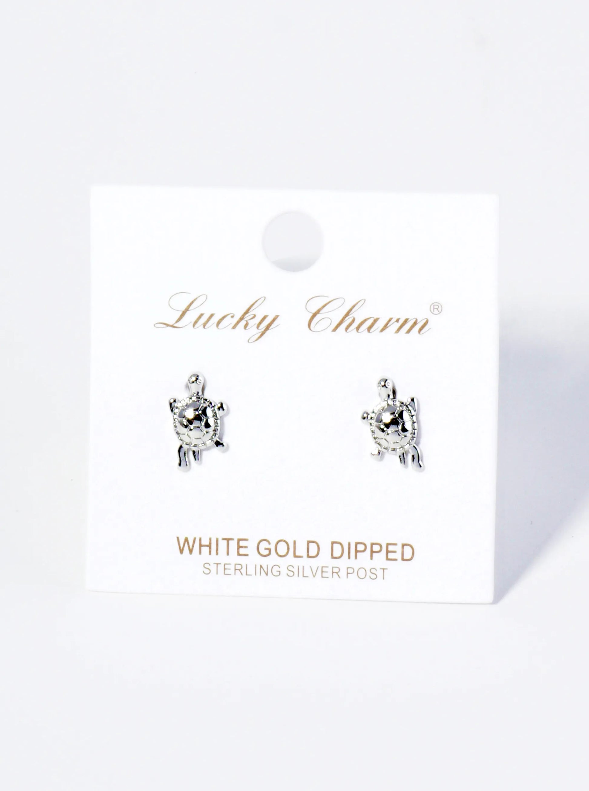 18K Gold Dipped Textured Brass Turtle Stud Earrings