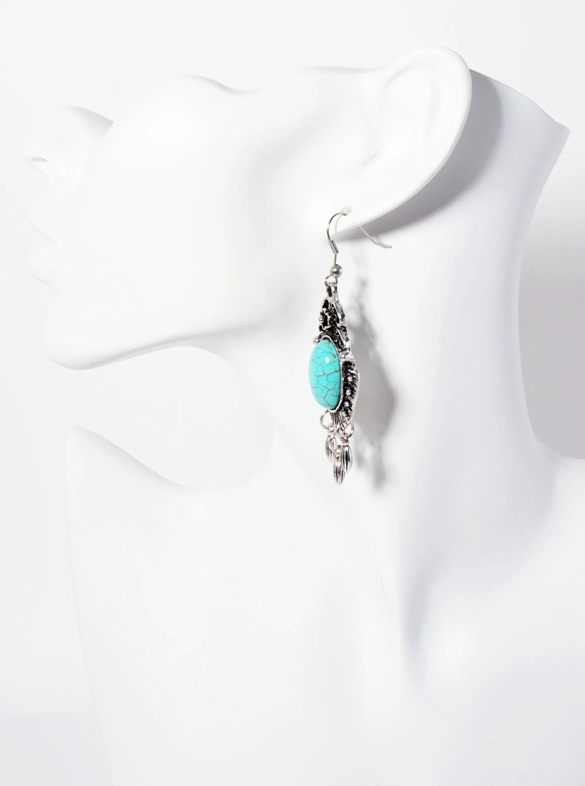 18mm Oval-Shaped Turquoise Semi-Precious Natural-Stone Dangle Earrings