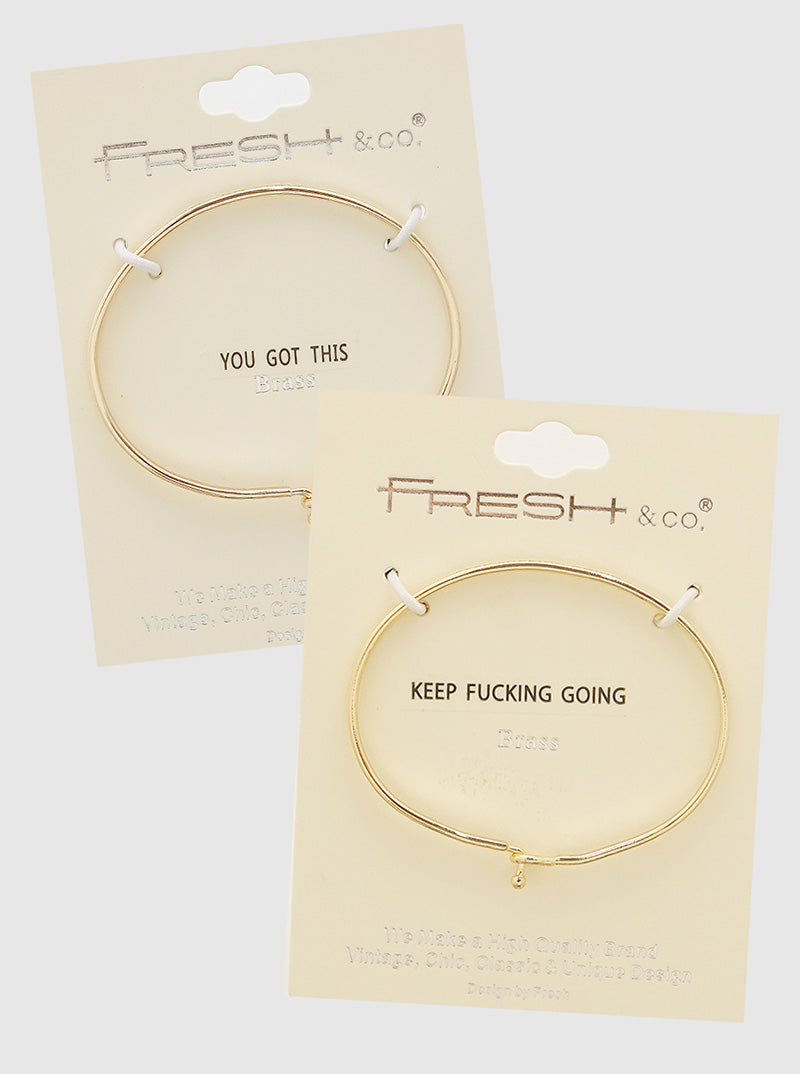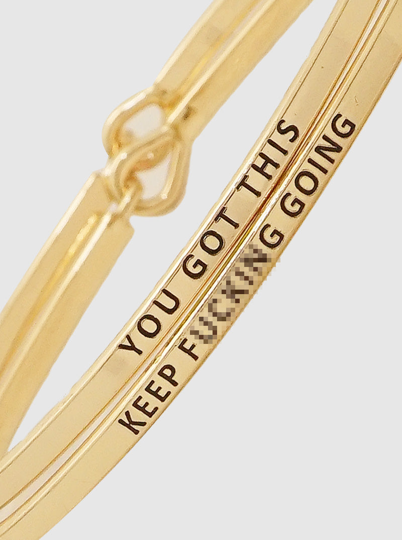 2PC Set Keep Fucking Going Engraved Inspirational Bangle Bracelets