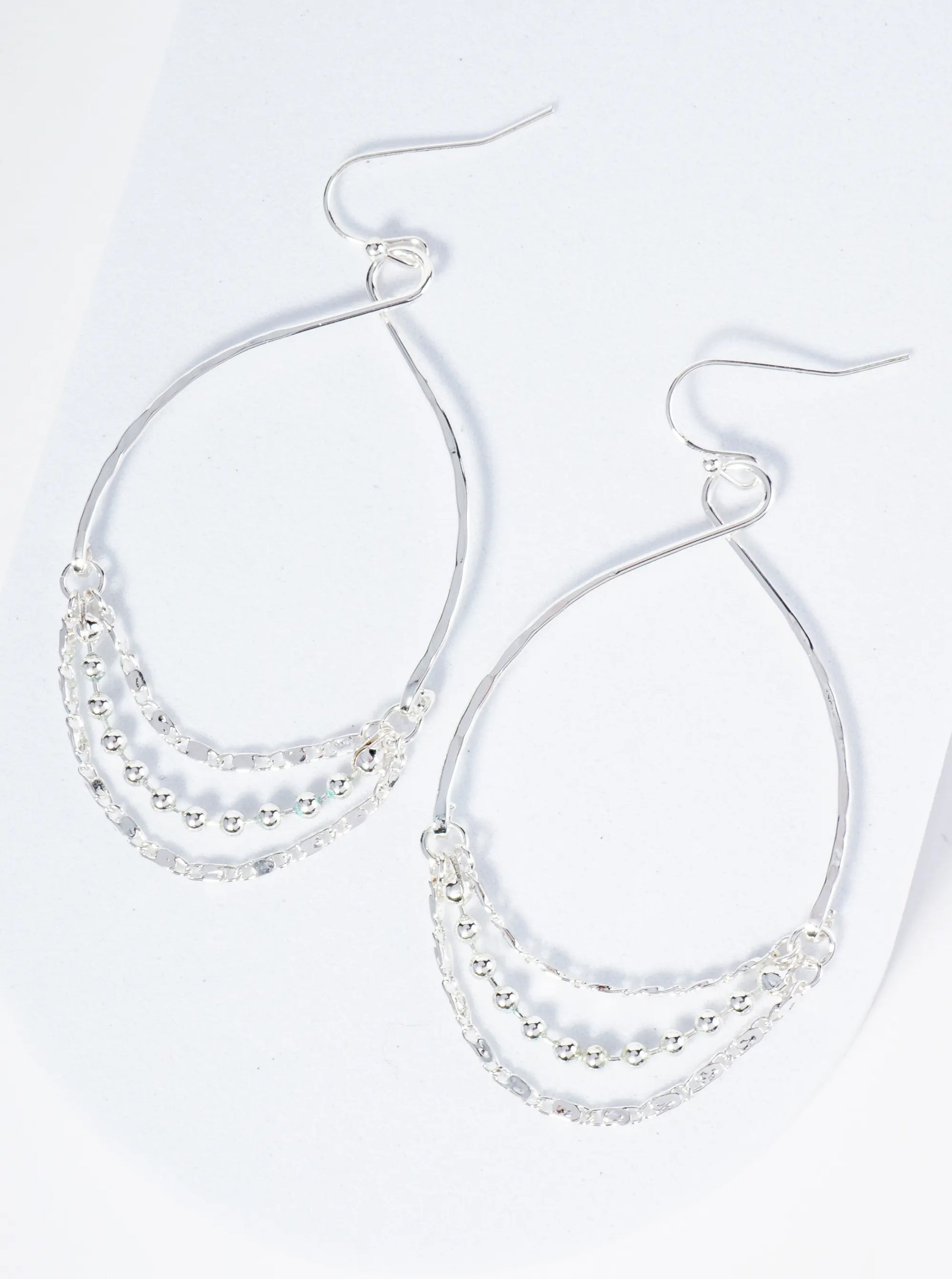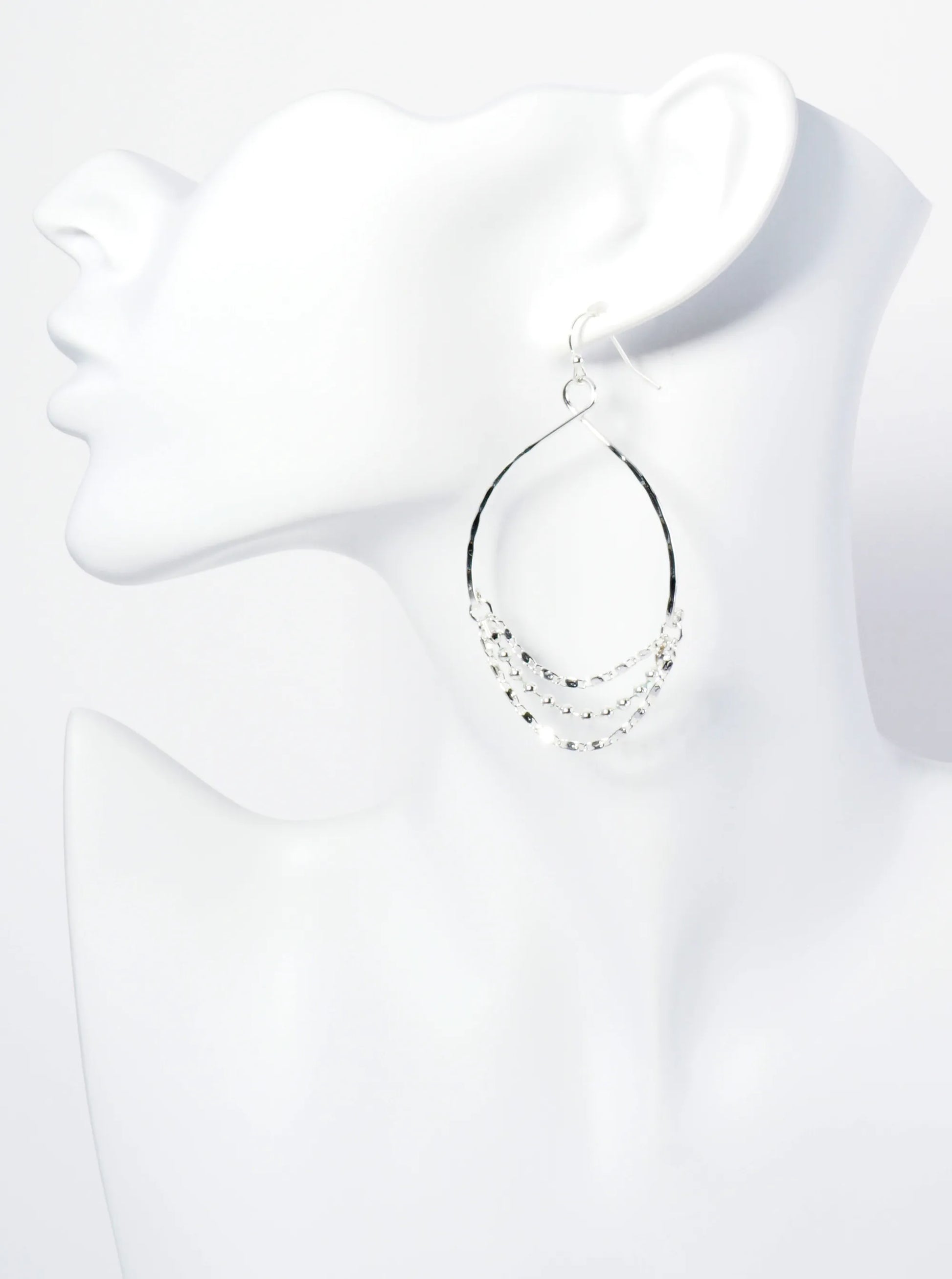 3-Layer Chain Drop Textured Circle Dangle Earrings