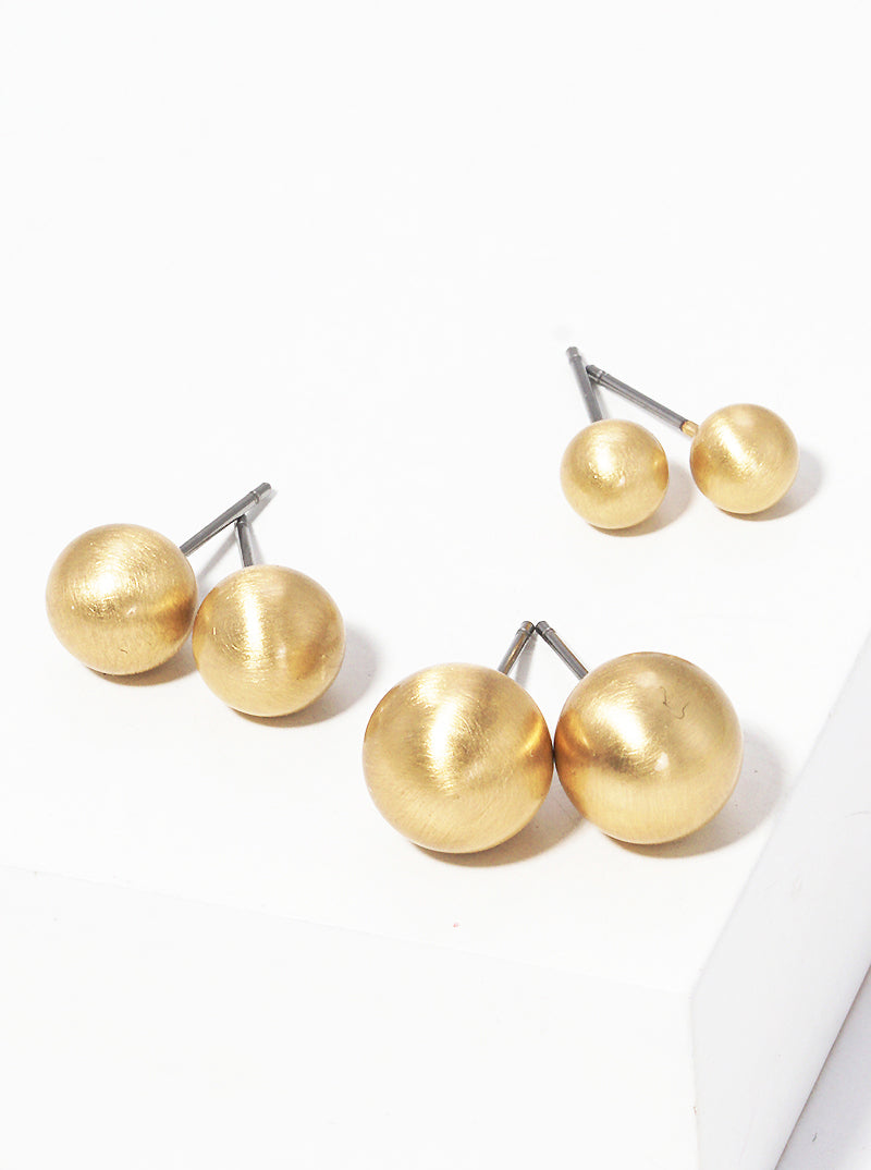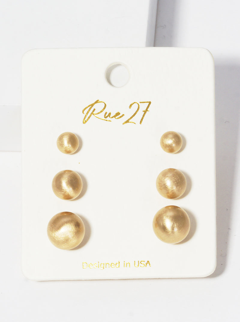 3-PC Set 6 To 10mm Metallic Ball Bead Stud Earrings