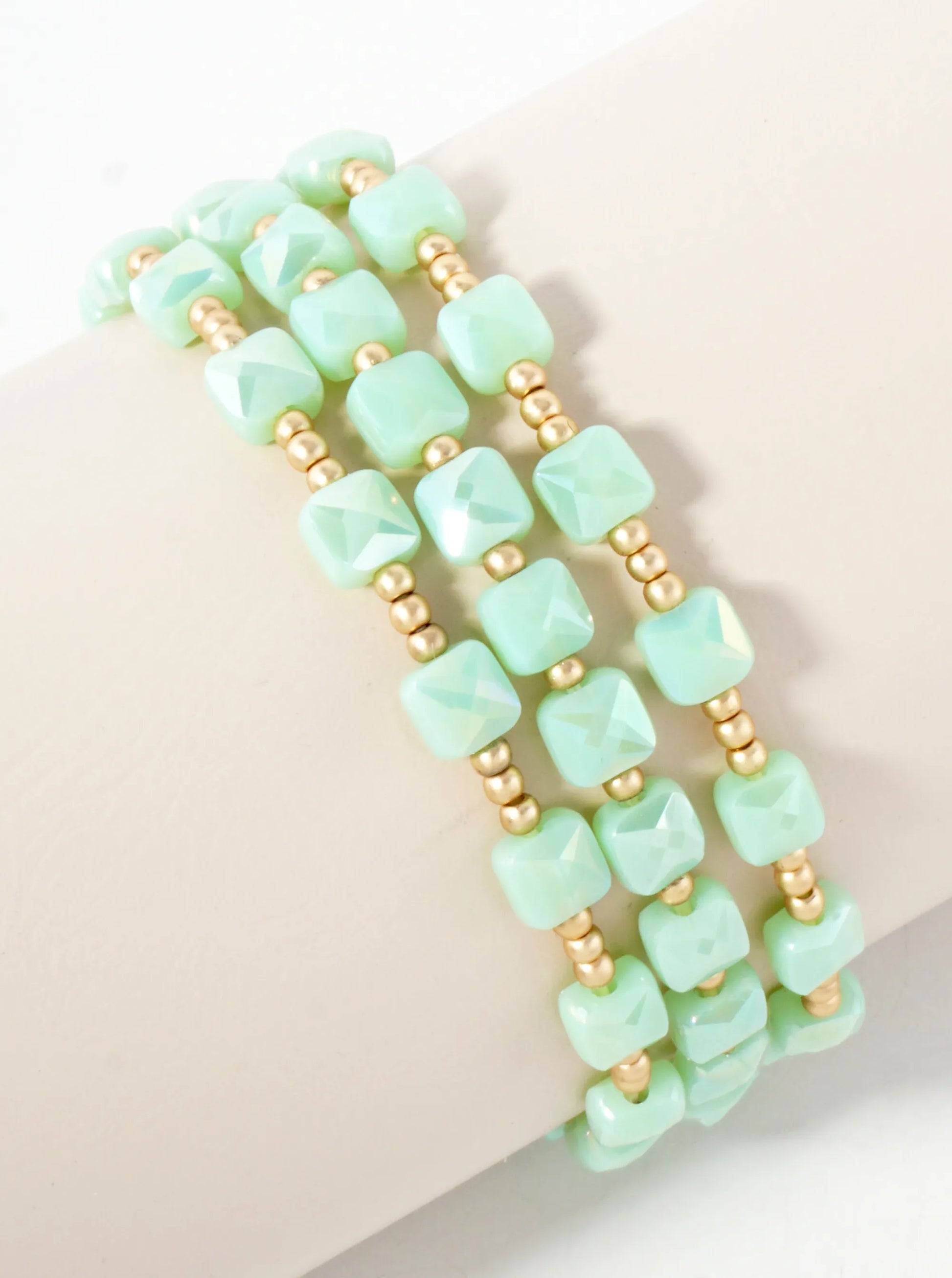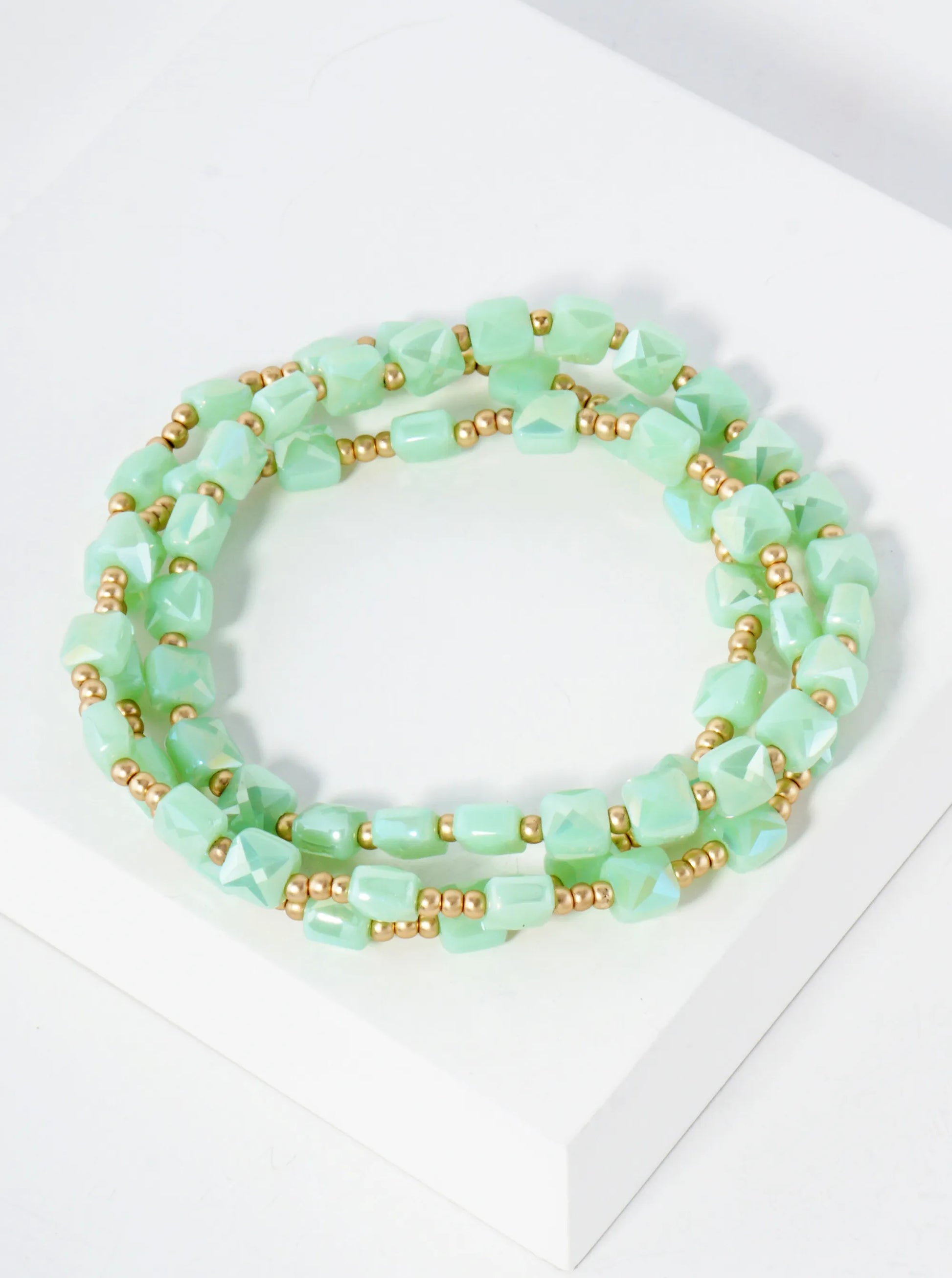 3-PC-Set Faceted 6mm Square Beaded Stackable Stretch Bracelet