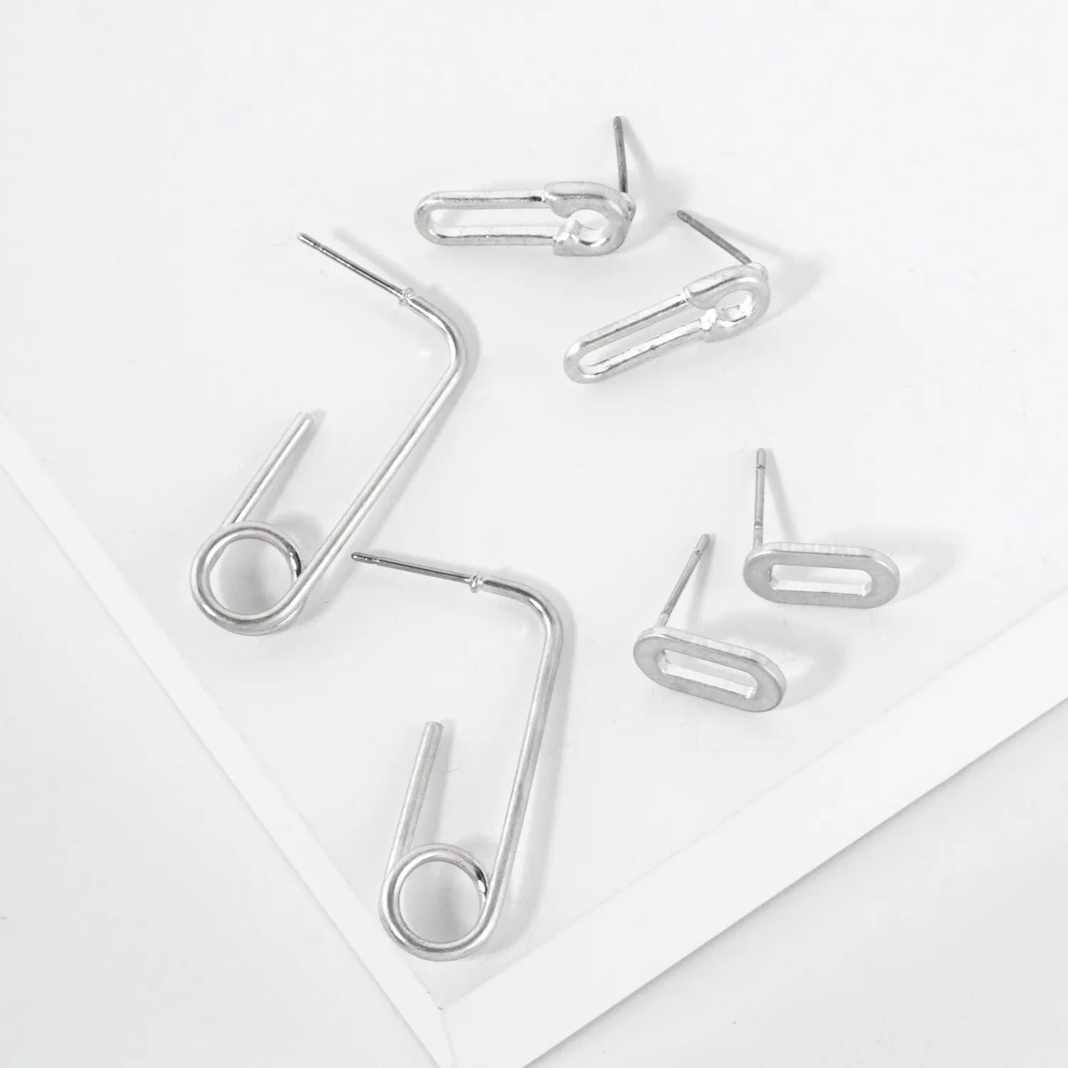 Add A Minimalist, Edgy Touch To Your Collection With This 3-piece Metal Paper Clip Stud Earring Set, Perfect For Customers Who Love Clean Lines And Modern Essentials. These Sleek Studs Feature A Polished Paper Clip Silhouette, Making Them Easy To Mix, Match, And Stack Across Multiple Piercings For An Effortlessly Chic Look.