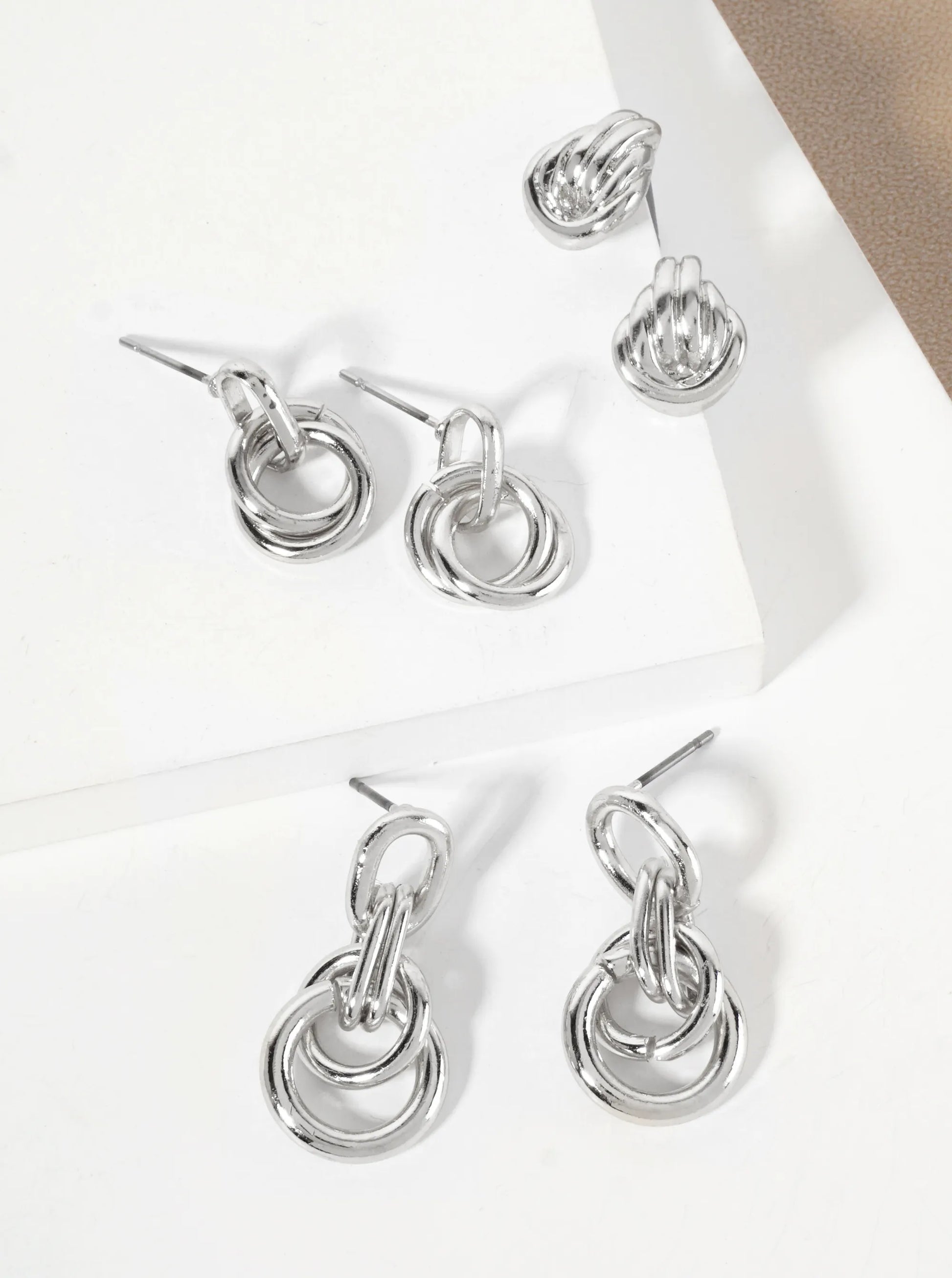 3PC-Set Polished Metal Doorknocker Dangle Stud Earrings