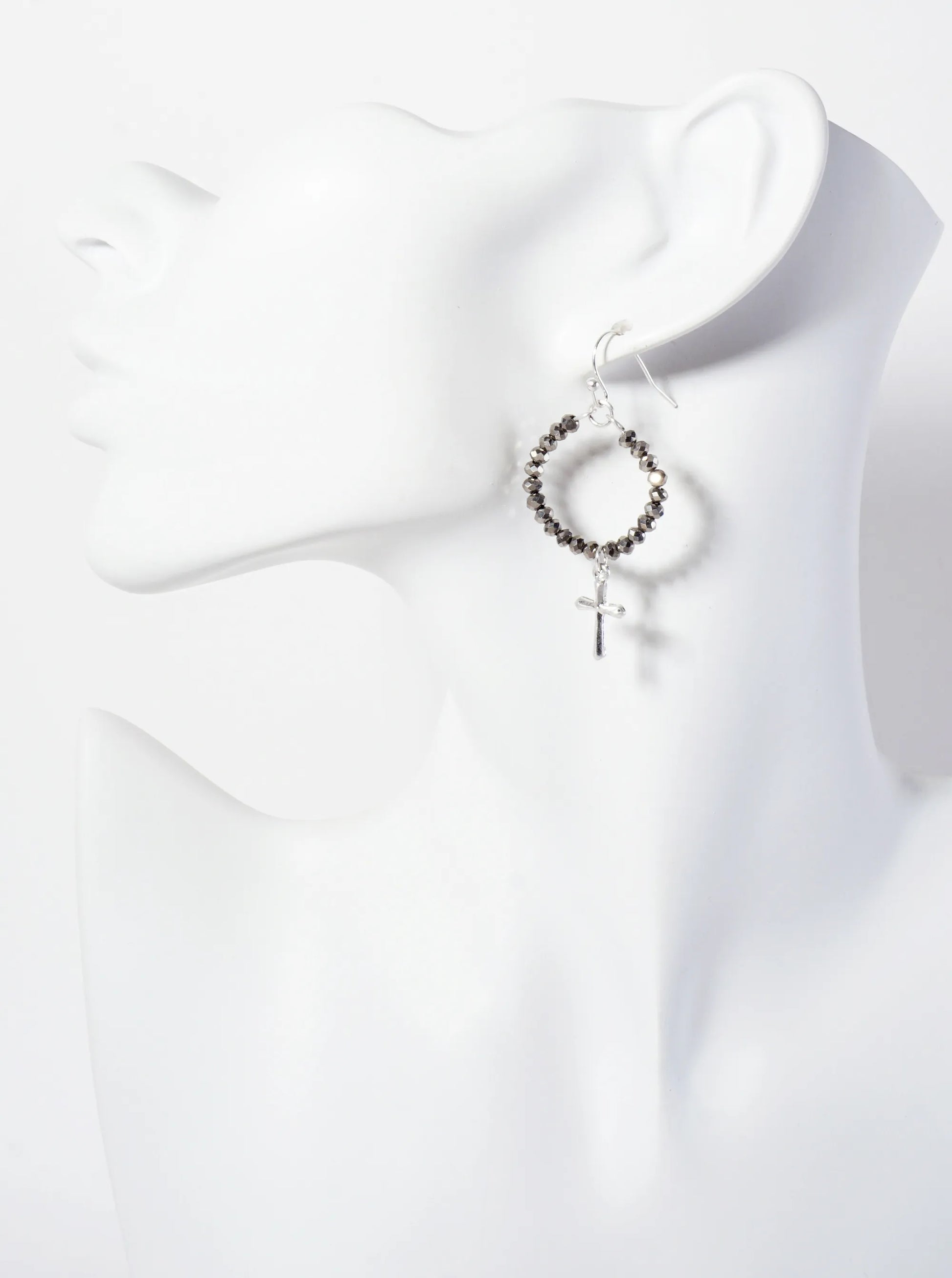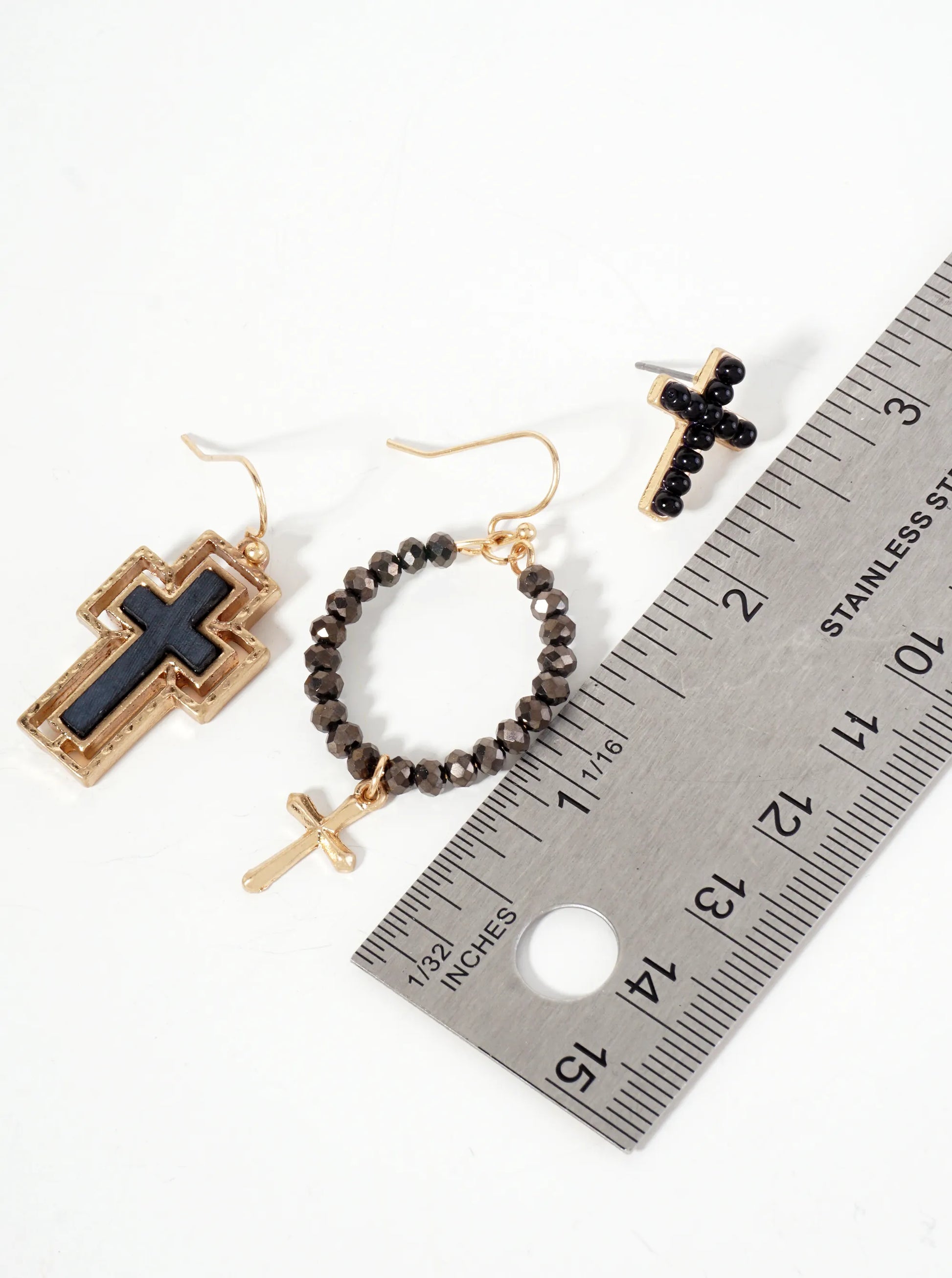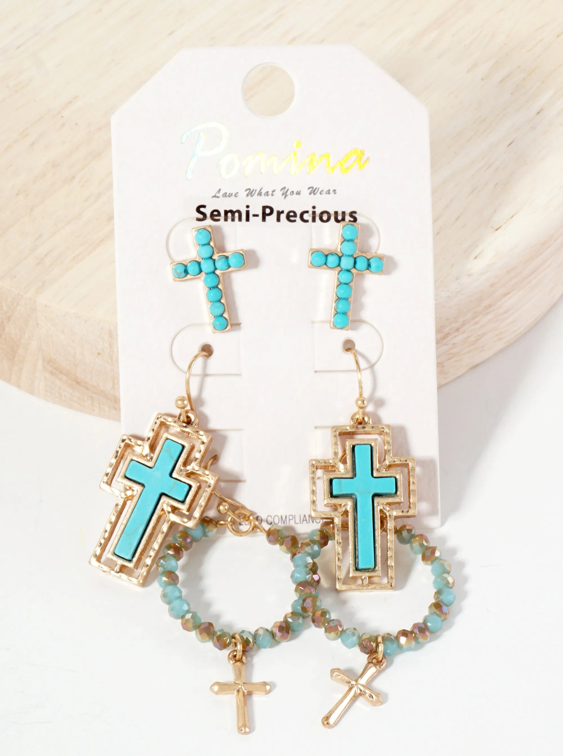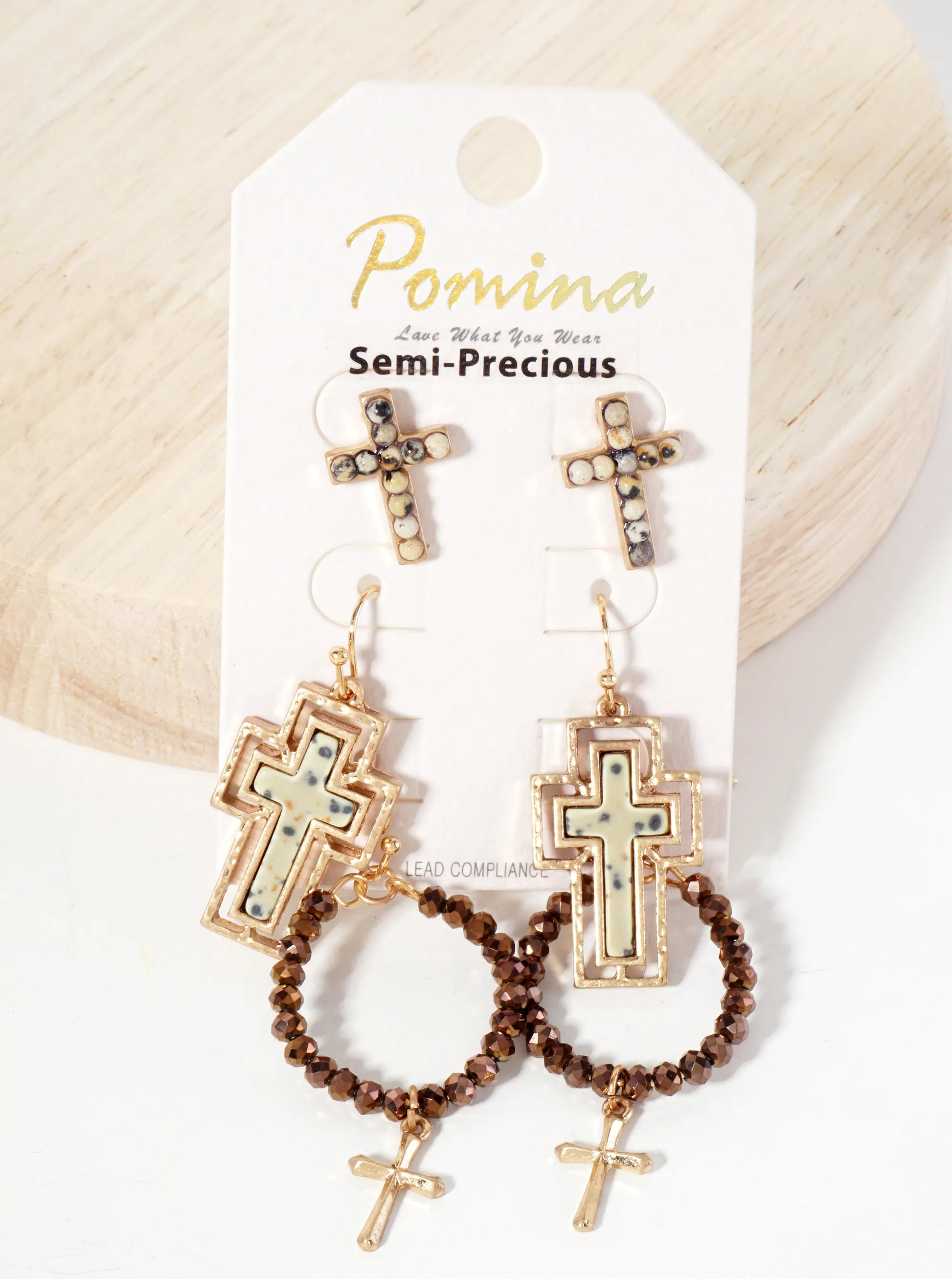 The Earrings Is A Beautifully Curated Collection That Blends Natural Elegance With Delicate Craftsmanship. Each Pair In The Set Features A Semi-precious Natural Stone, Carefully Shaped And Complemented By Glass Bead Accents That Add A Subtle Shimmer. The Cross Design Serves As The Centerpiece, Symbolizing Both Style And Meaning, Making These Earrings Perfect For Those Who Appreciate Faith-inspired Jewelry With A Modern Touch.