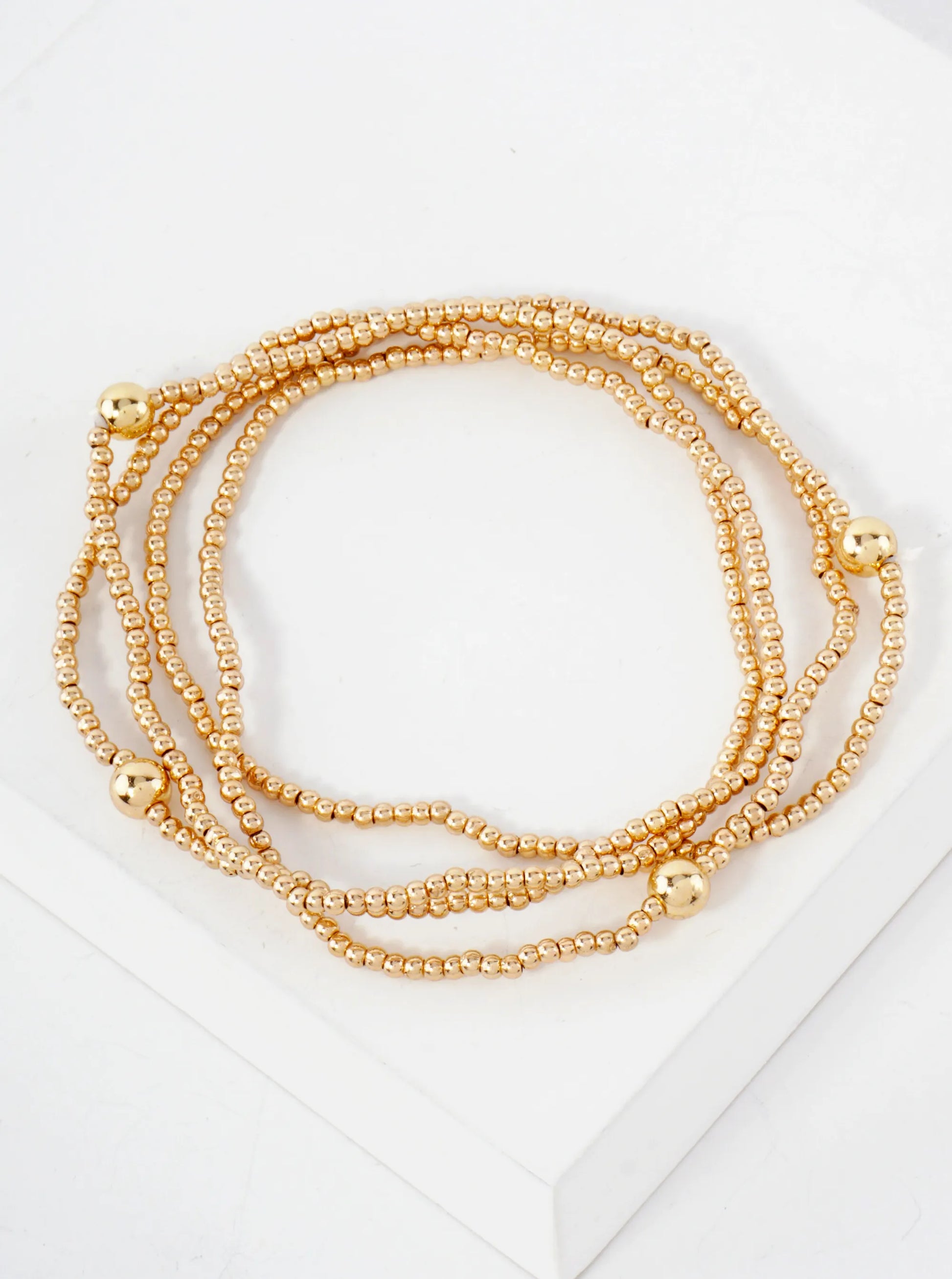 3PC-Set Skinny Metallic Glass Beads Stackable Stretch Bracelets
