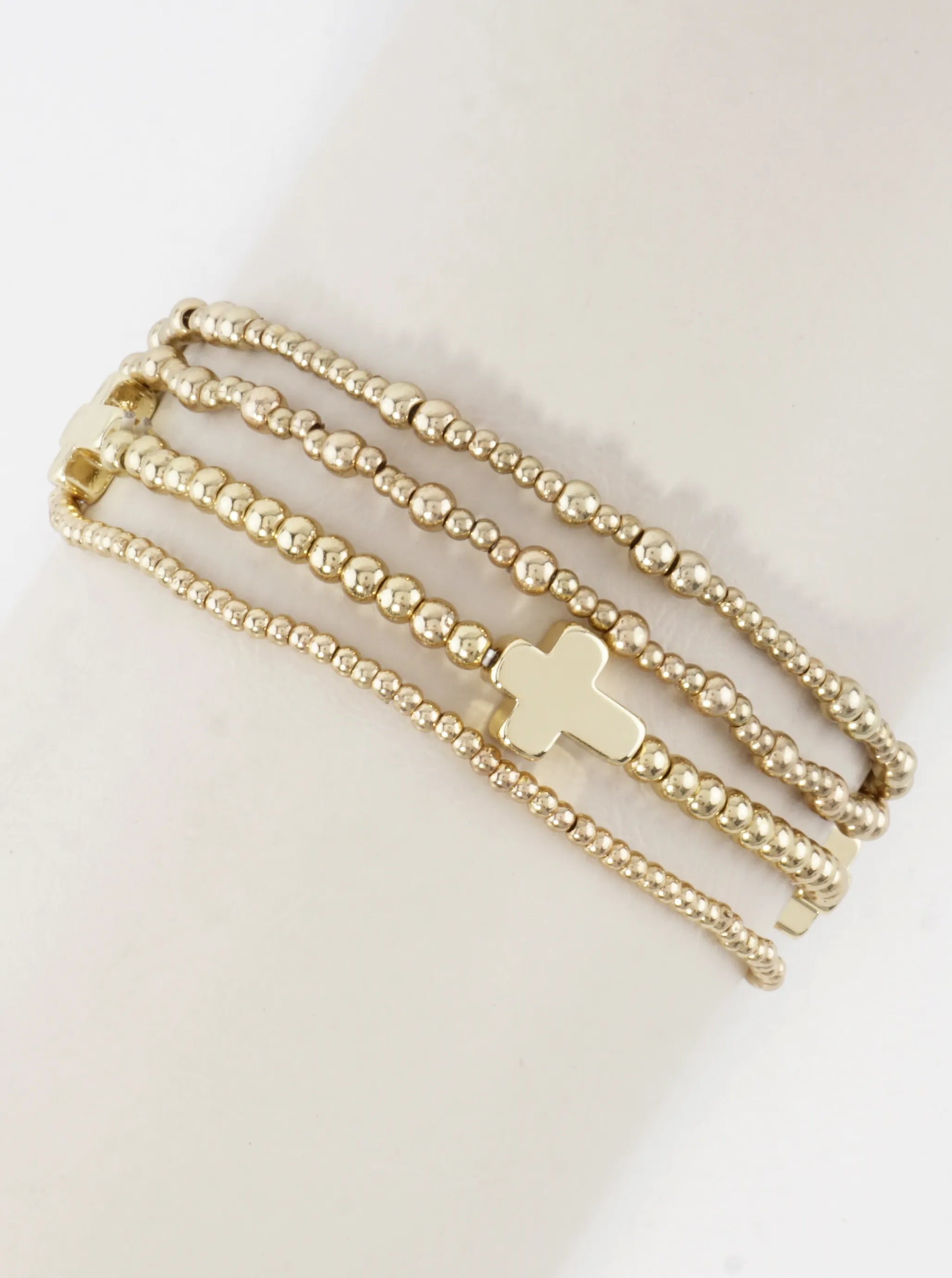 4PC-Set Cross Accents Metallic Stretch Bracelets