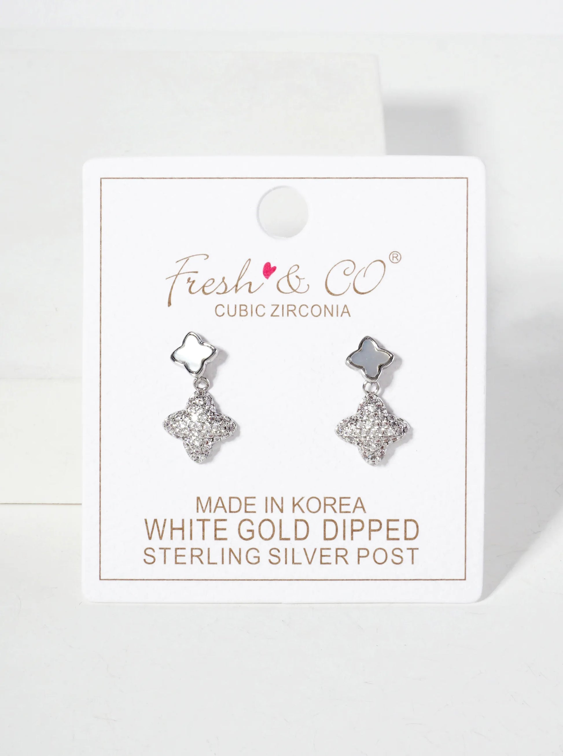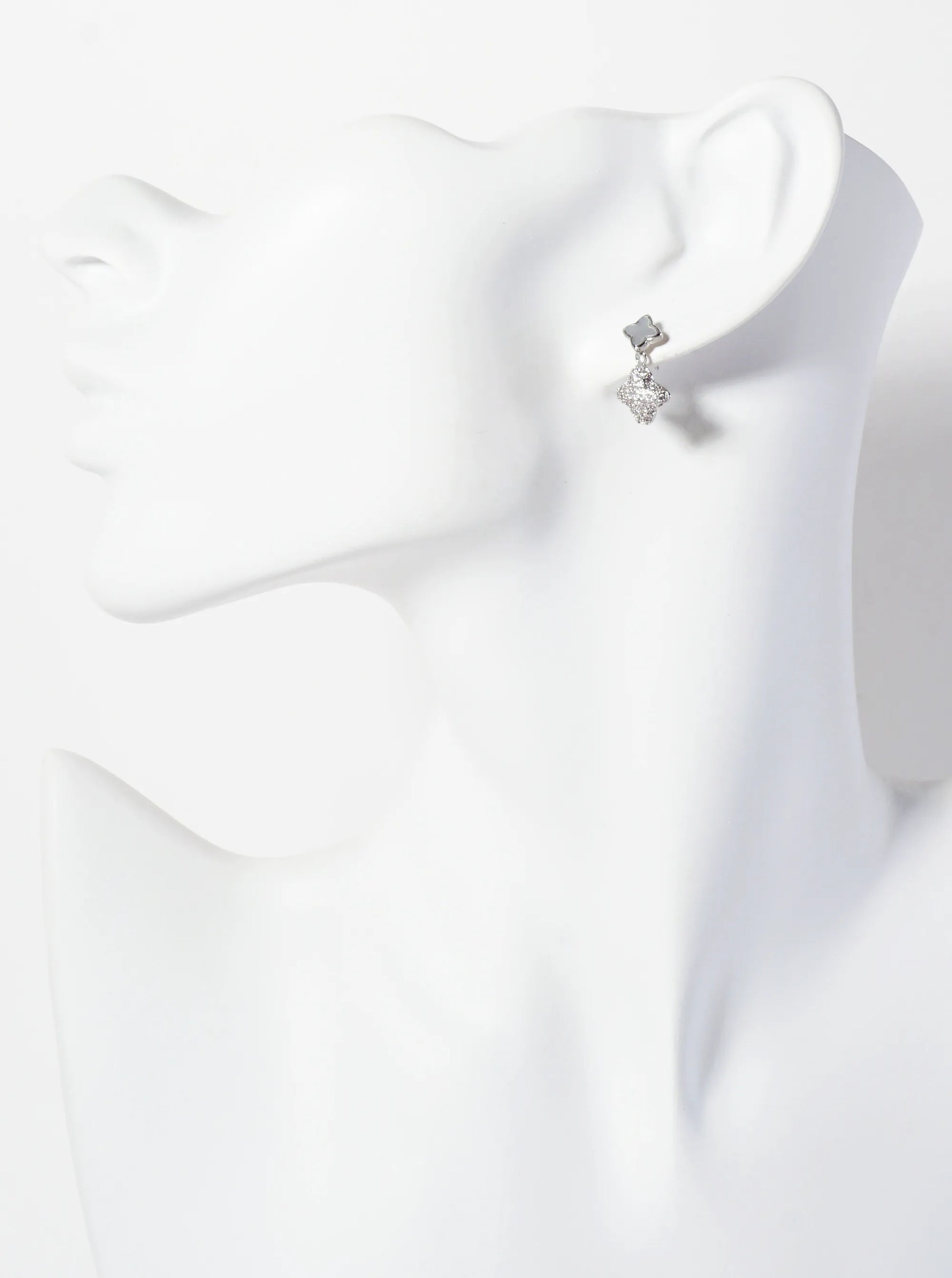 6-10mm Pave-Set CZ Dainty Double Quatrefoil Drop 18K-Gold-Dipped Dangle Earrings