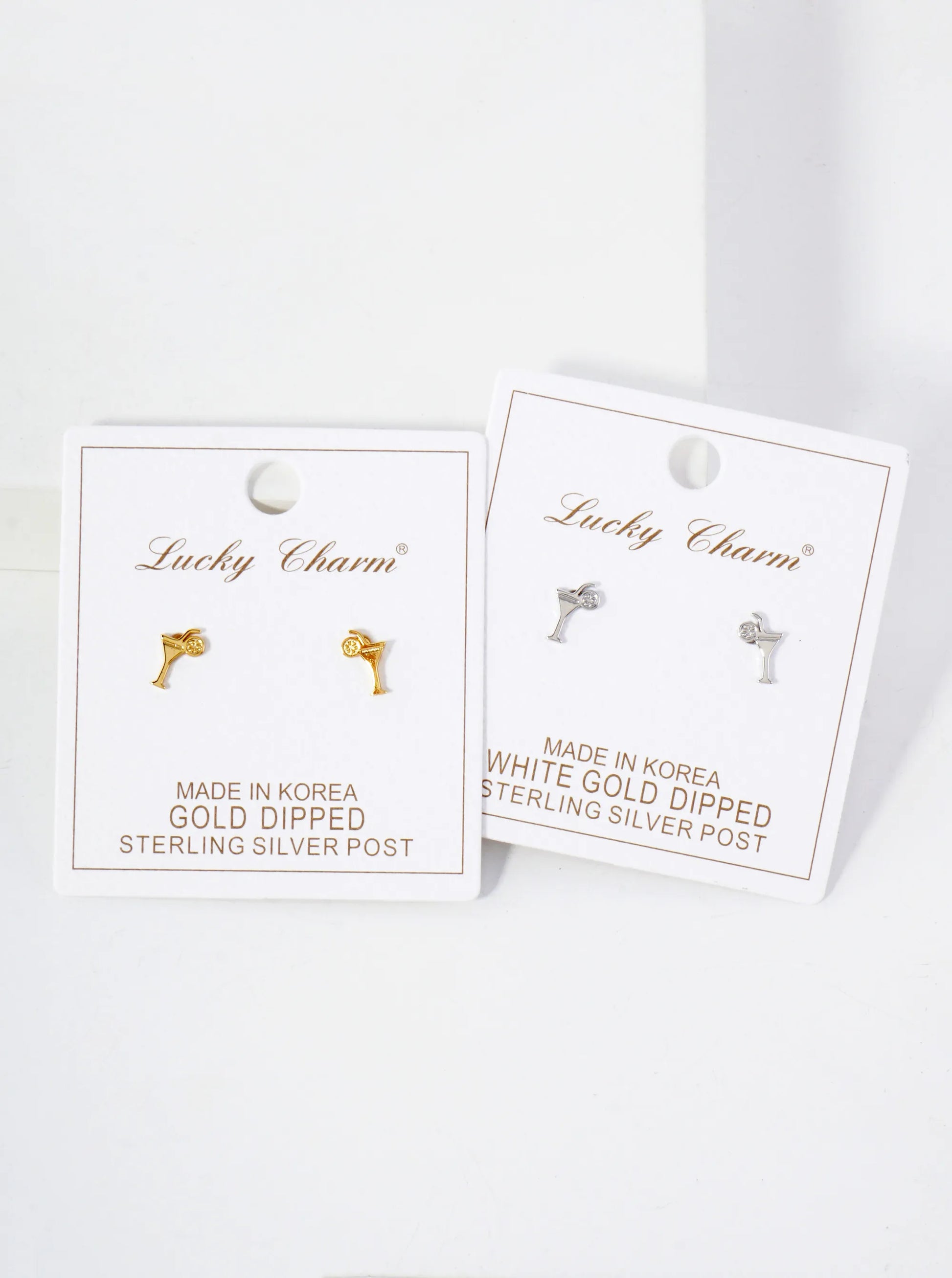 9mm Dainty Martini 18K-Gold-Dipped Brass Stud Earrings