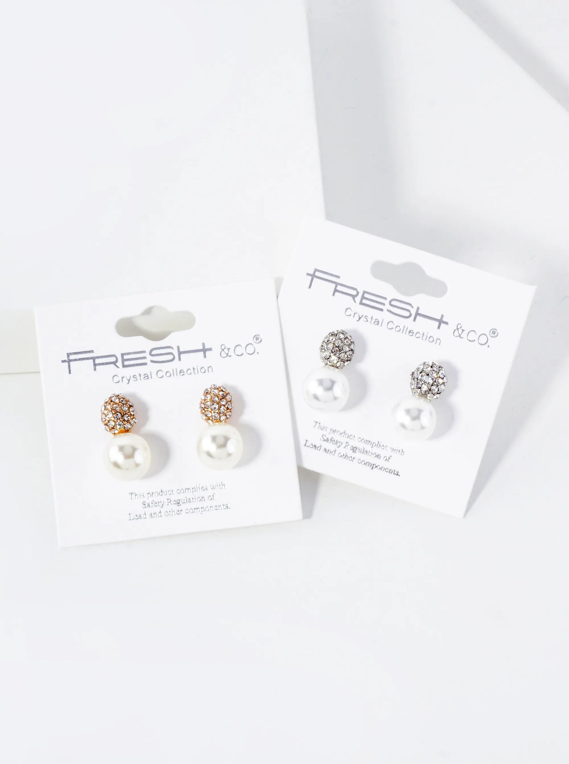 Elegant And Eye-catching, These 9mm Pearl Drop Earrings Feature Crystal-pave Oval Studs That Add A Touch Of Refined Sparkle. The Lustrous Faux Pearl Drops Offer Classic Sophistication, While The Secure Post-back Design Ensures A Comfortable, All-day Fit—perfect For Elevating Both Daywear And Special Occasion Looks.