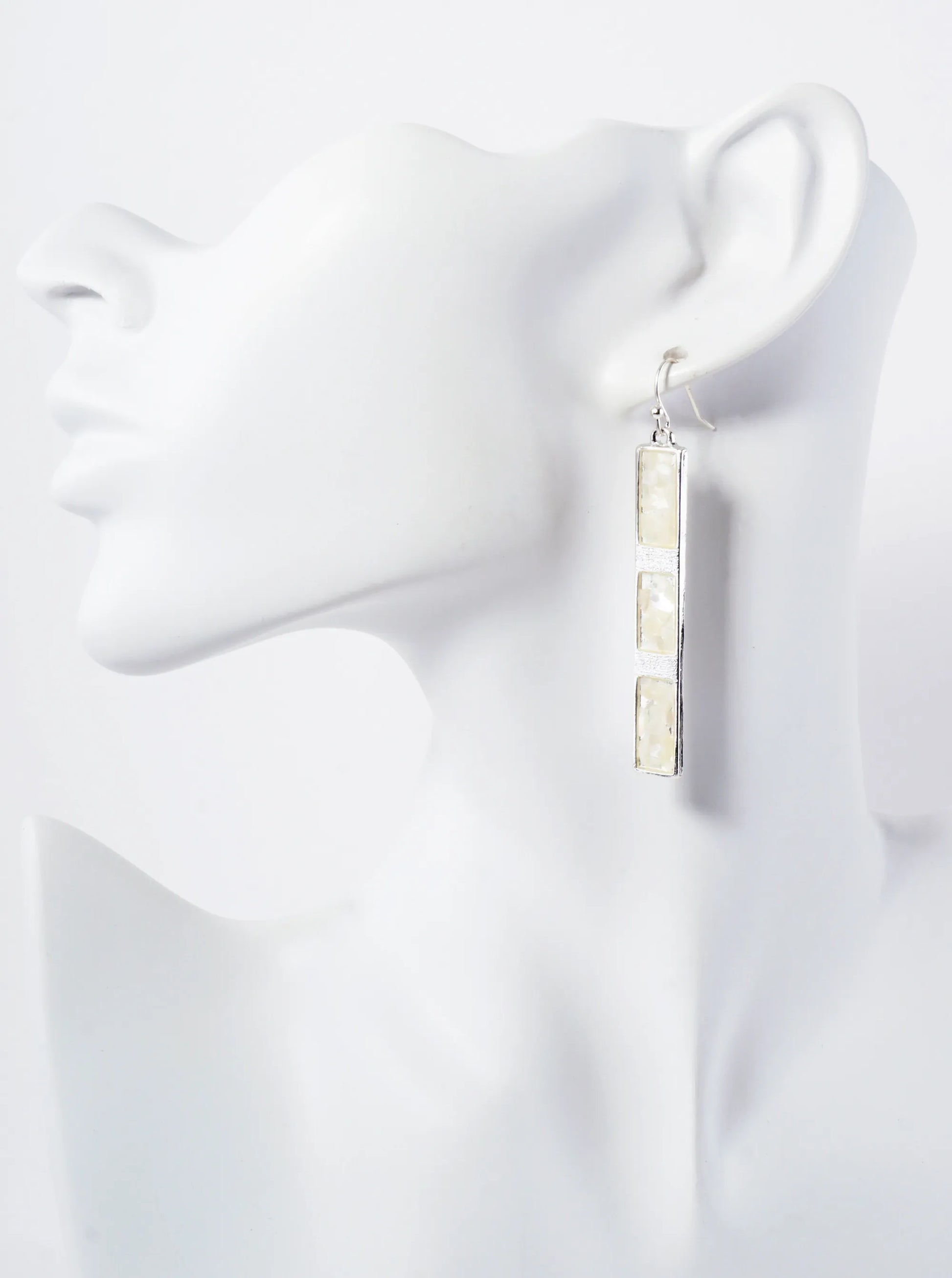 Abalone Shell Inlay Rectangle Bar Drop Dangle Earrings