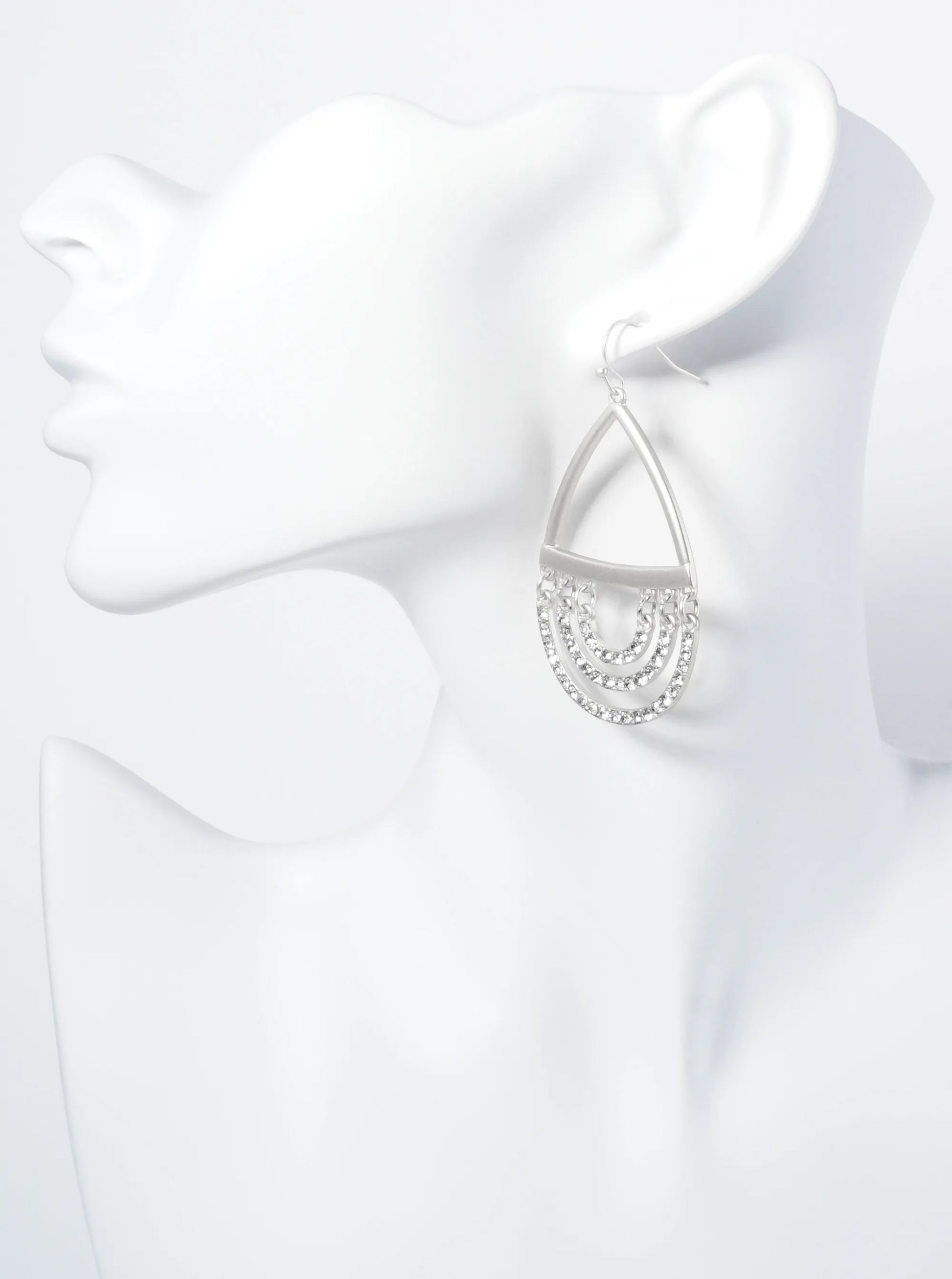 These Earrings Are A Stunning Blend Of Elegance And Intricate Design. These Earrings Feature A Graceful Teardrop Shape, Enhanced By Three Half-moon Elements, Each Adorned With Sparkling Stones That Catch The Light Beautifully. The Dangle Style Adds Movement And Sophistication, Making Them Perfect For Any Occasion.