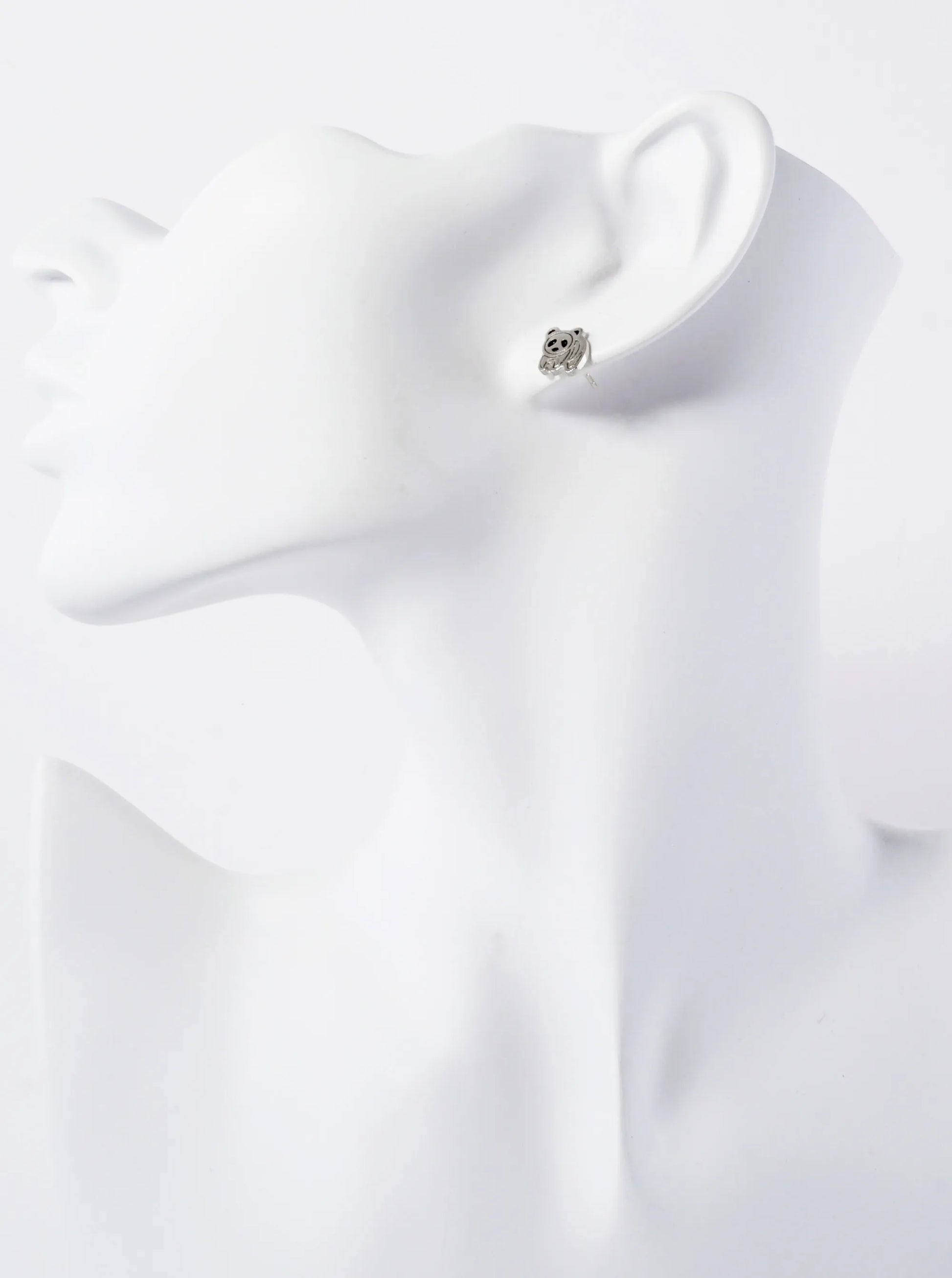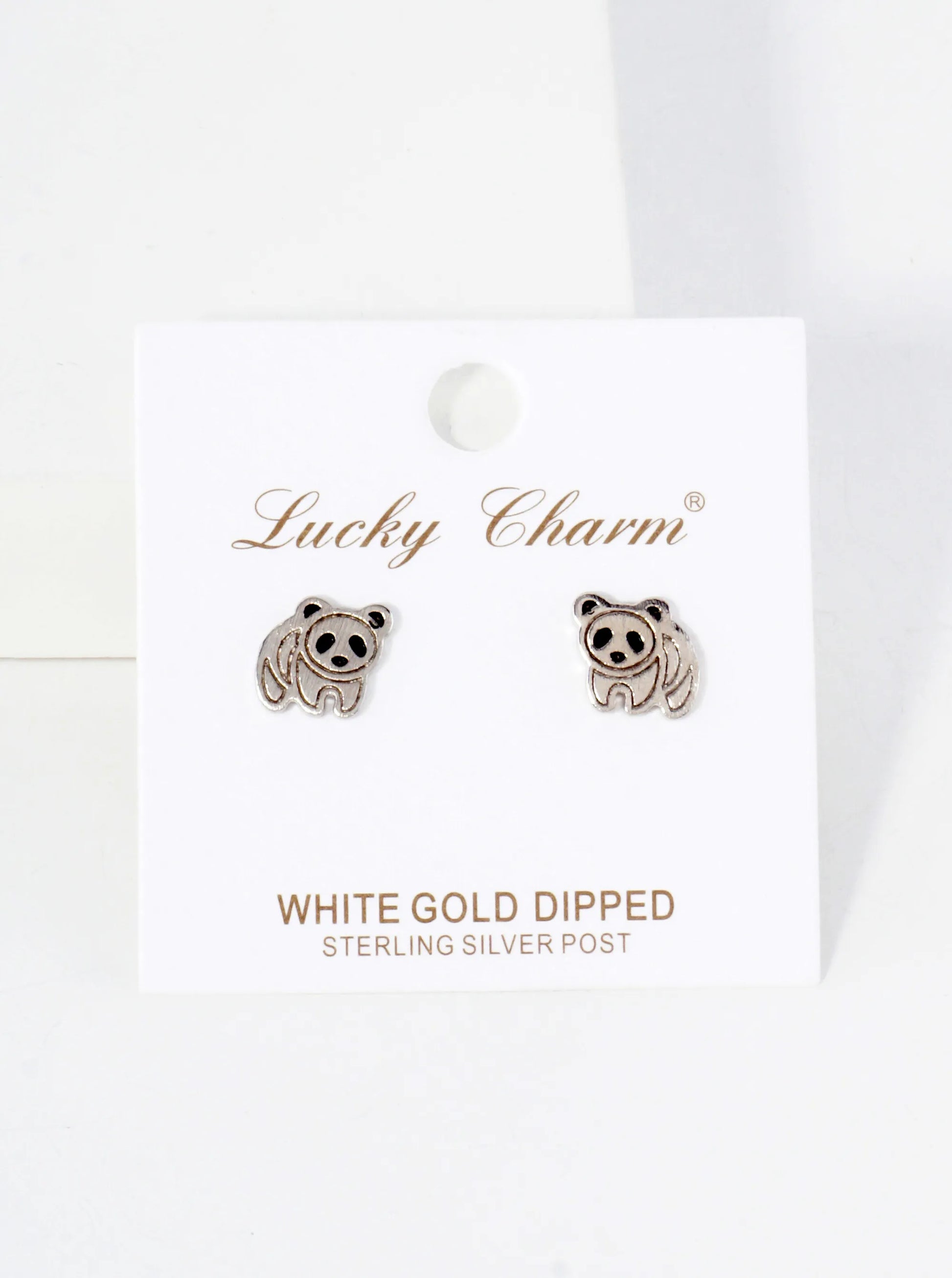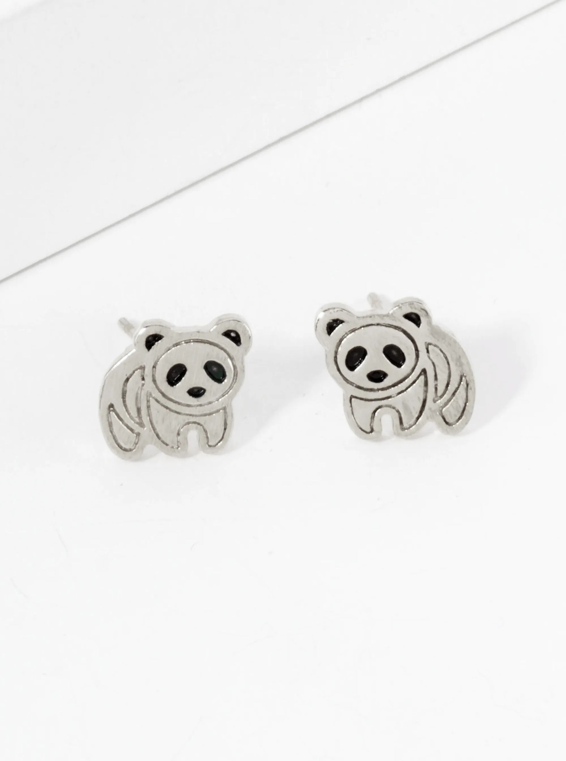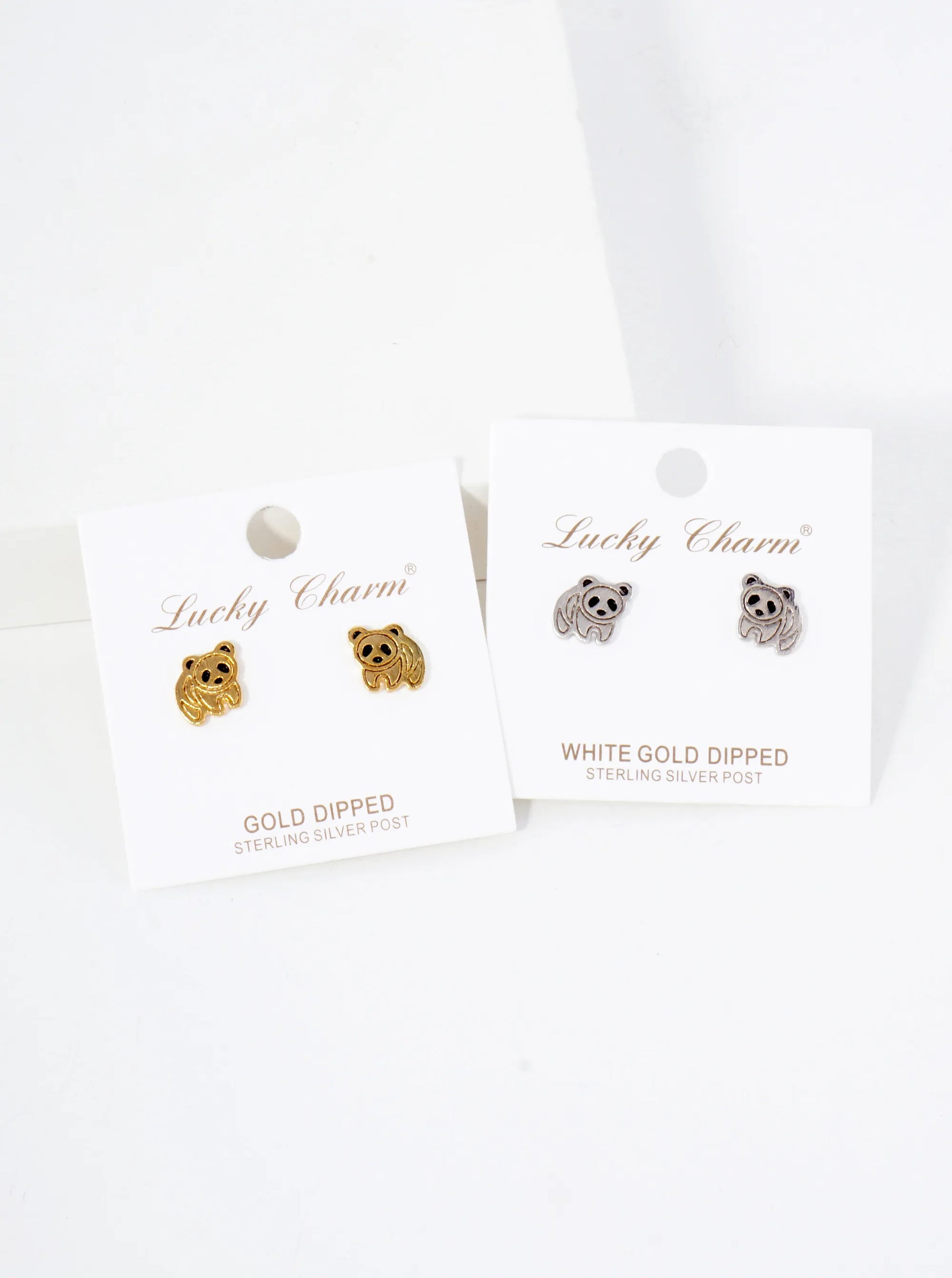 Animal-Theme Brushed Brass 10mm Panda 18K-Gold-Dipped Stud Earrings