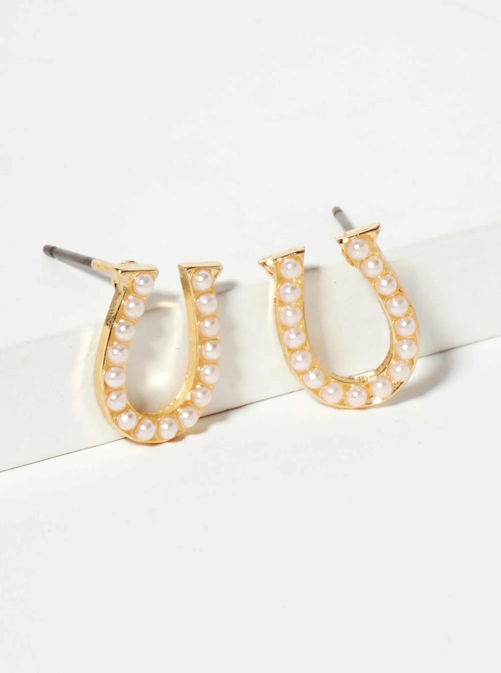 These Earrings Are A Charming Blend Of Rustic Western Aesthetics And Elegant Sophistication. Each Stud Features A Horseshoe-shaped Design, Symbolizing Luck And Tradition, Meticulously Adorned With Shimmering Crystal Pavé For A Touch Of Glamour. The Inner Curve Of The Horseshoe Is Accentuated With Smooth, Luminous Pearls, Adding A Classic, Refined Feel To The Design.