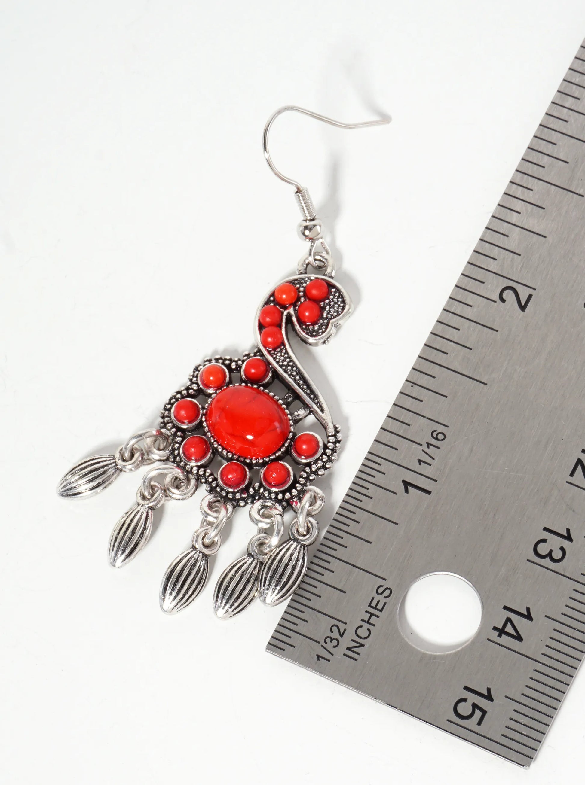 Animal-Theme Vintage Swan Semi-Precious Natural-Stone Dangle Drop Earrings