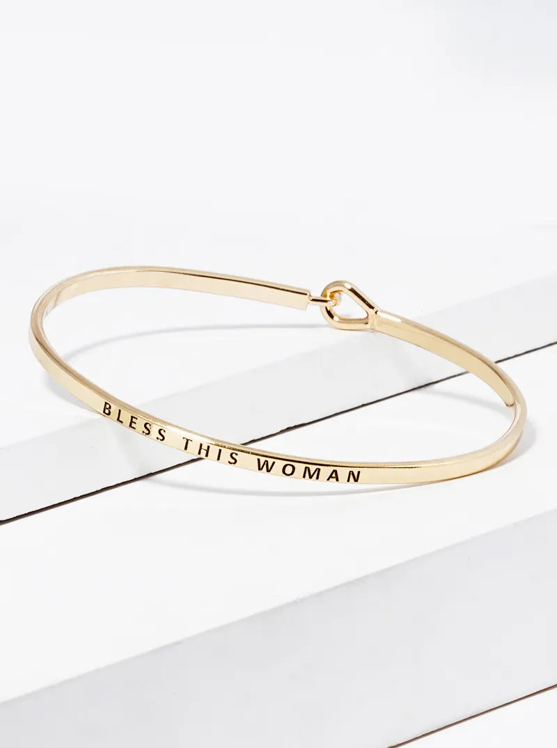 Bless This Woman Engraved Inspirational Bangle Bracelet