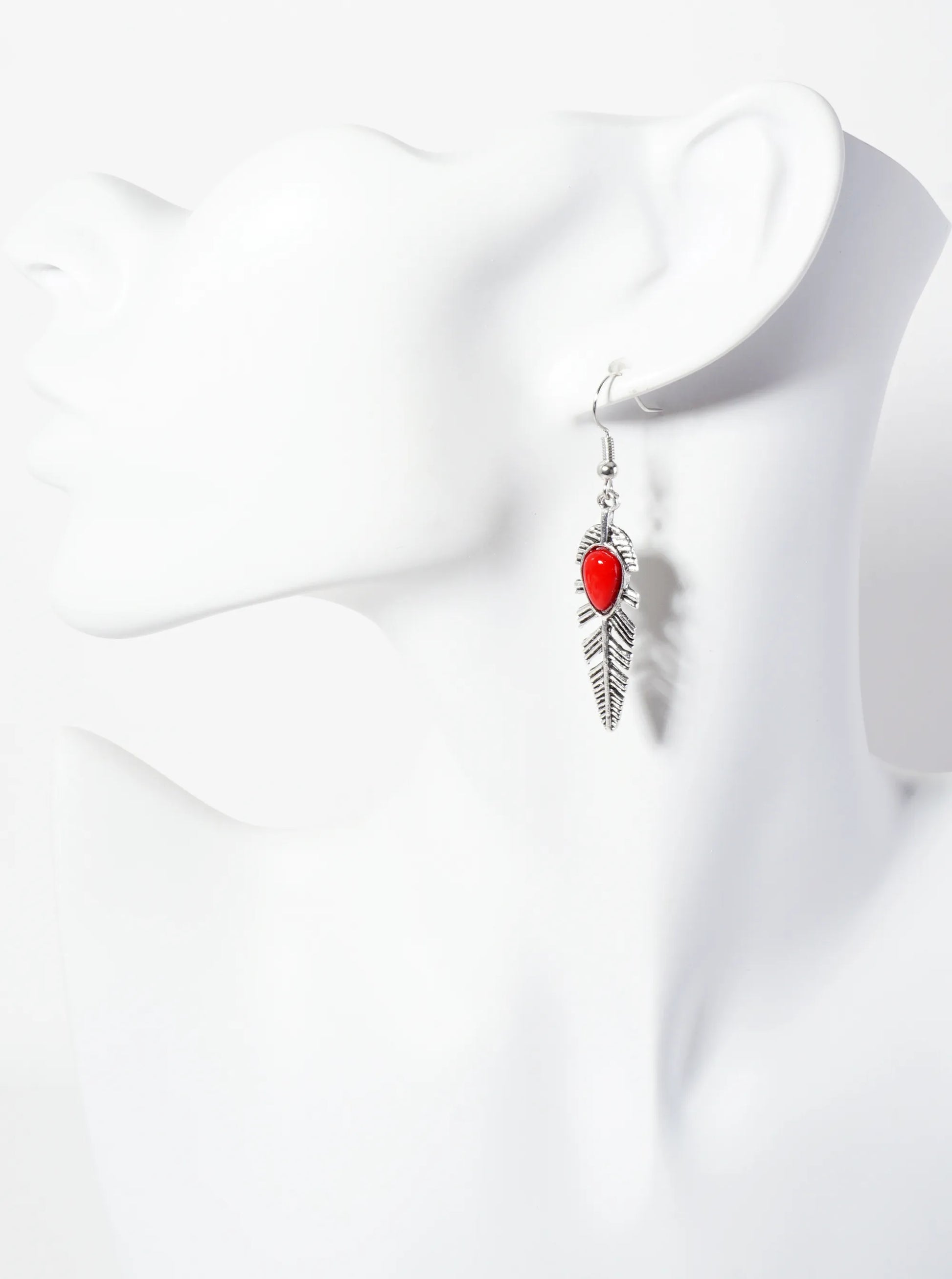 The Earrings Are A Stunning Blend Of Earthy Elegance And Bohemian Flair. These Earrings Feature Beautifully Textured Feathers, Which Are Delicately Crafted To Showcase Intricate Detailing. Embedded With Semi-precious Natural Stones, They Add A Pop Of Color And Organic Charm. The Design Is Both Free-spirited And Sophisticated, With The Stones Complementing The Feather Motif For A Balanced Look. The Drop Style Offers Graceful Movement, Making These Earrings Perfect For Adding A Touch Of Boho Chic To Any Outfit. Whether For Casual Or Evening Wear, They Effortlessly Capture A Sense Of Natural Beauty And Individuality.