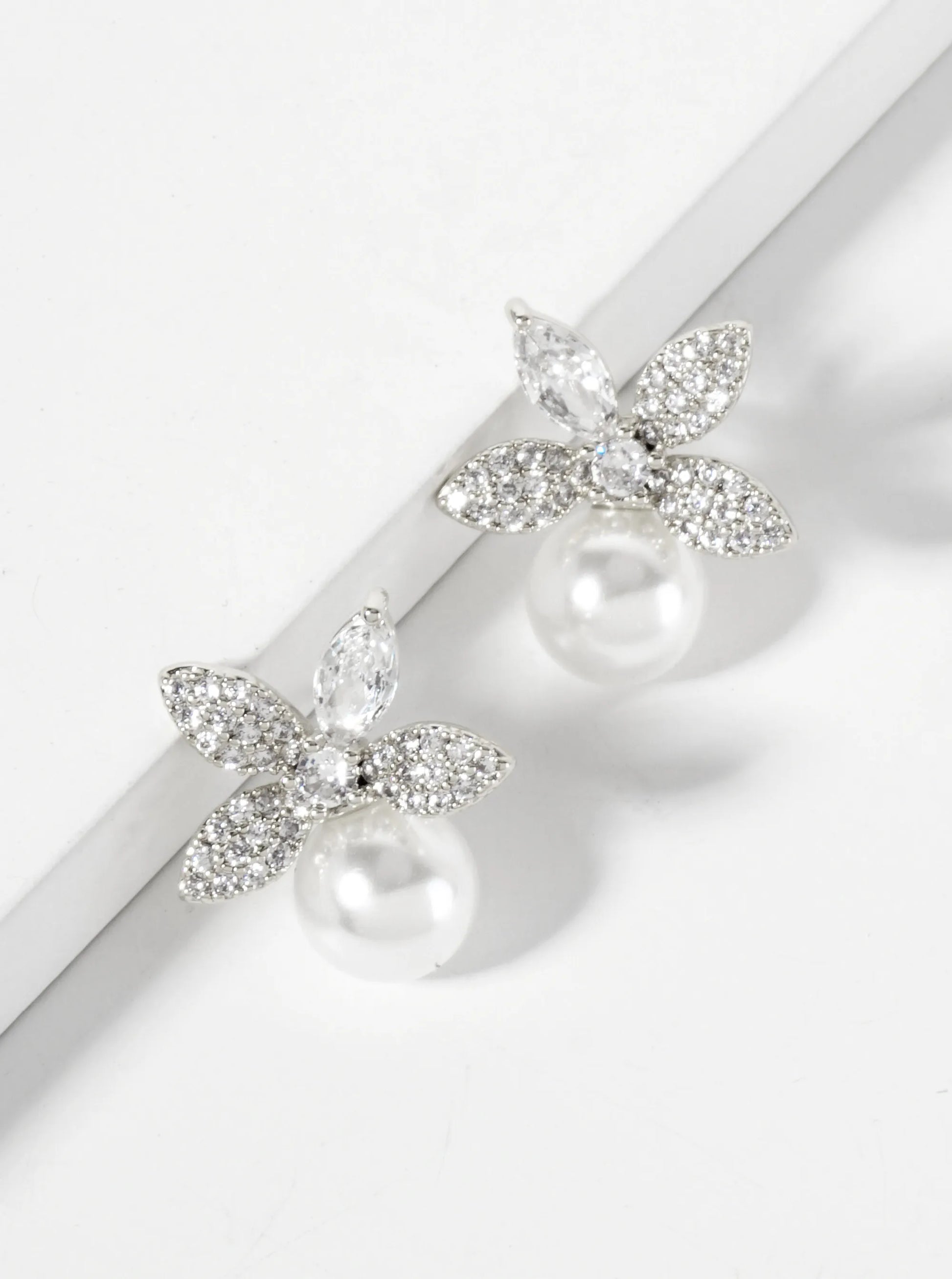 The Earrings Are A Graceful Blend Of Nature-inspired Beauty And Refined Elegance. These Earrings Feature A Delicate Botanical-flower Design, With Each Flower-shaped Stud Adorned With Pave-set Cubic Zirconia Stones That Add A Brilliant Sparkle. The Cubic Zirconia Stones Enhance The Flower’s Petals, Giving It A Dazzling, Radiant Effect That Catches The Light Beautifully.