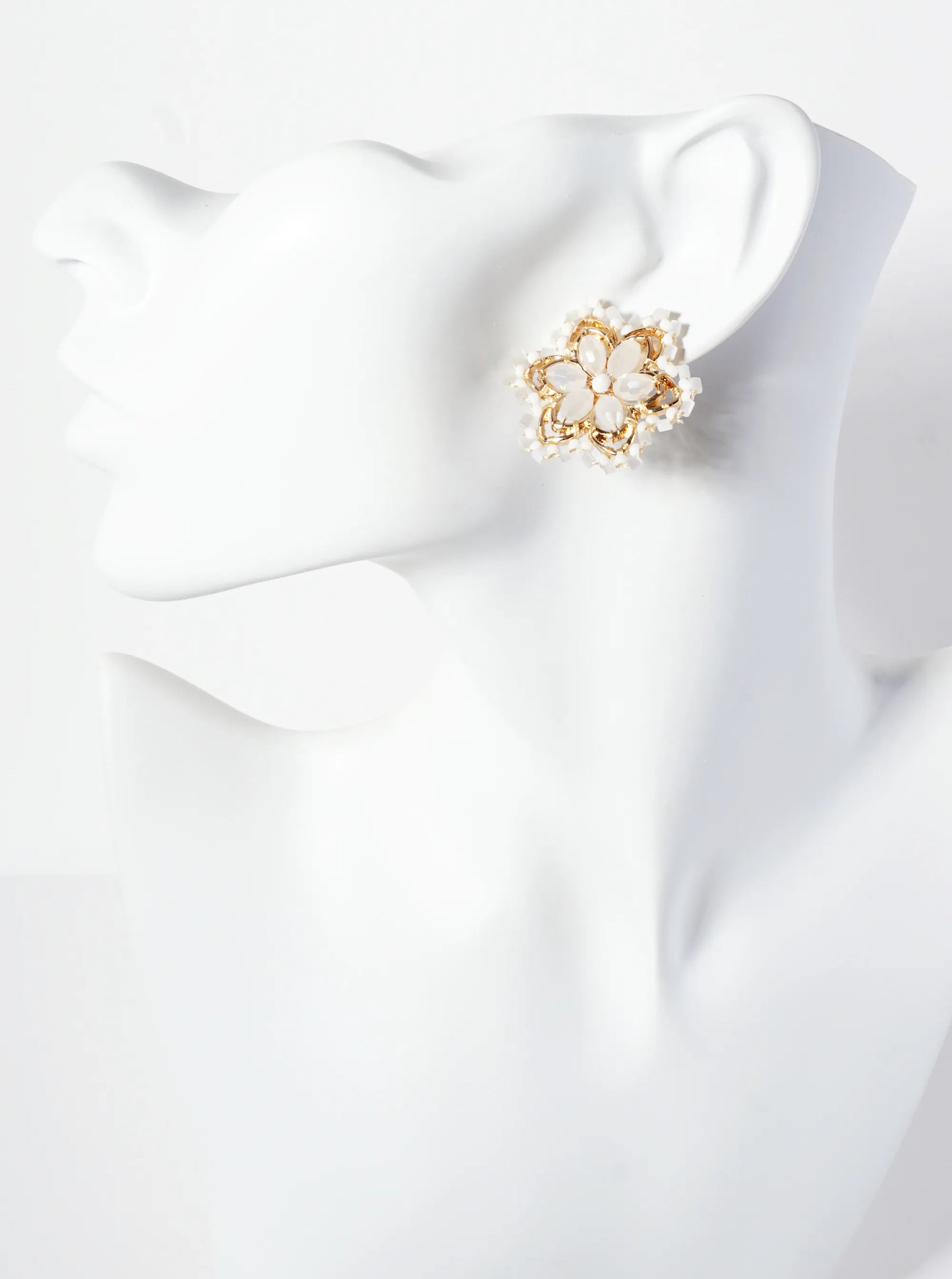 Botanical-Theme Glass-Beaded Flower Statement Stud Earrings