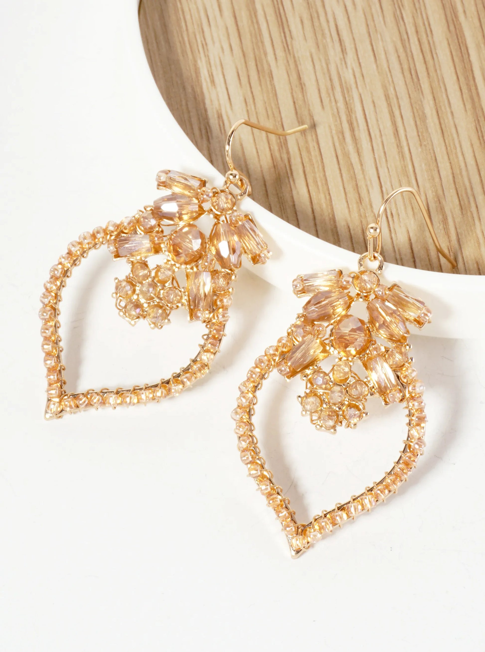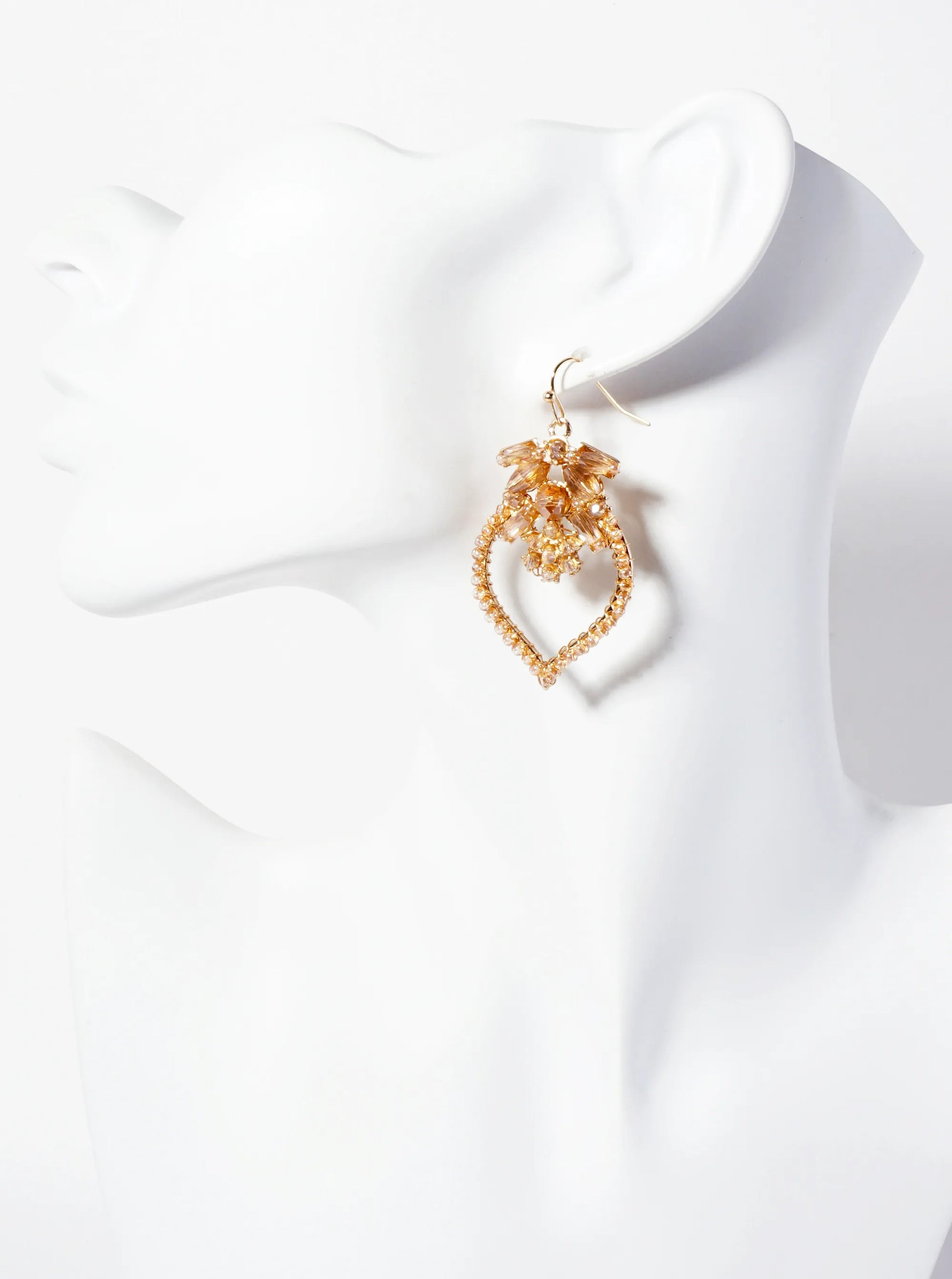 Botanical-Theme Glass-Beads Wire-Wrapped Dangle Earrings With Flower-Shaped Accents In-The-Center