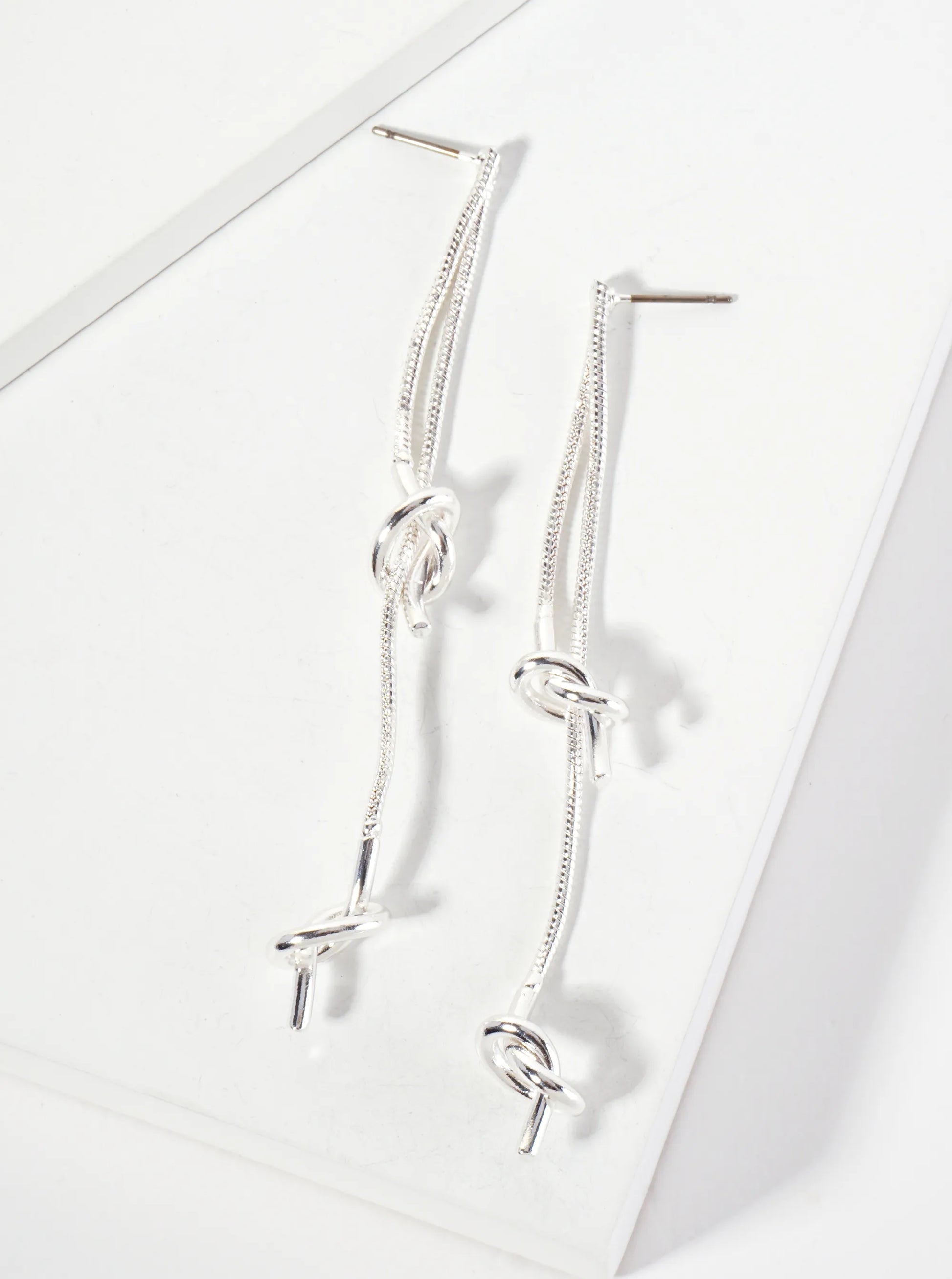 Brass Knot-Detail Snake Chain Dangle Earrings