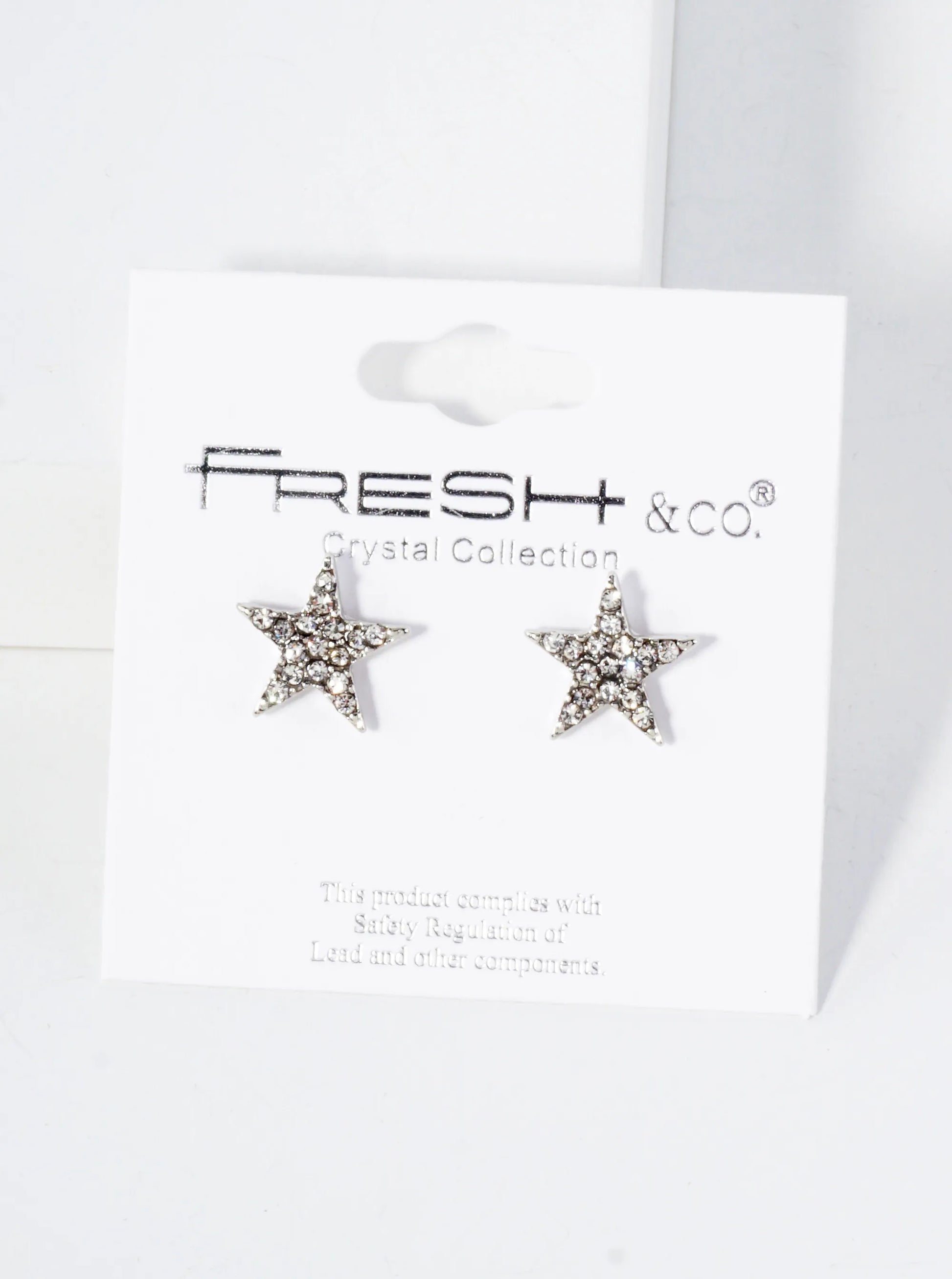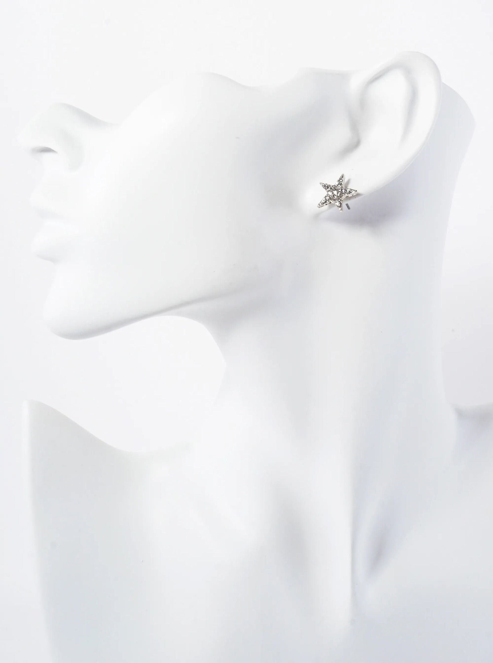 Celestial-Theme Crystal-Pave 13mm Star Stud Earrings