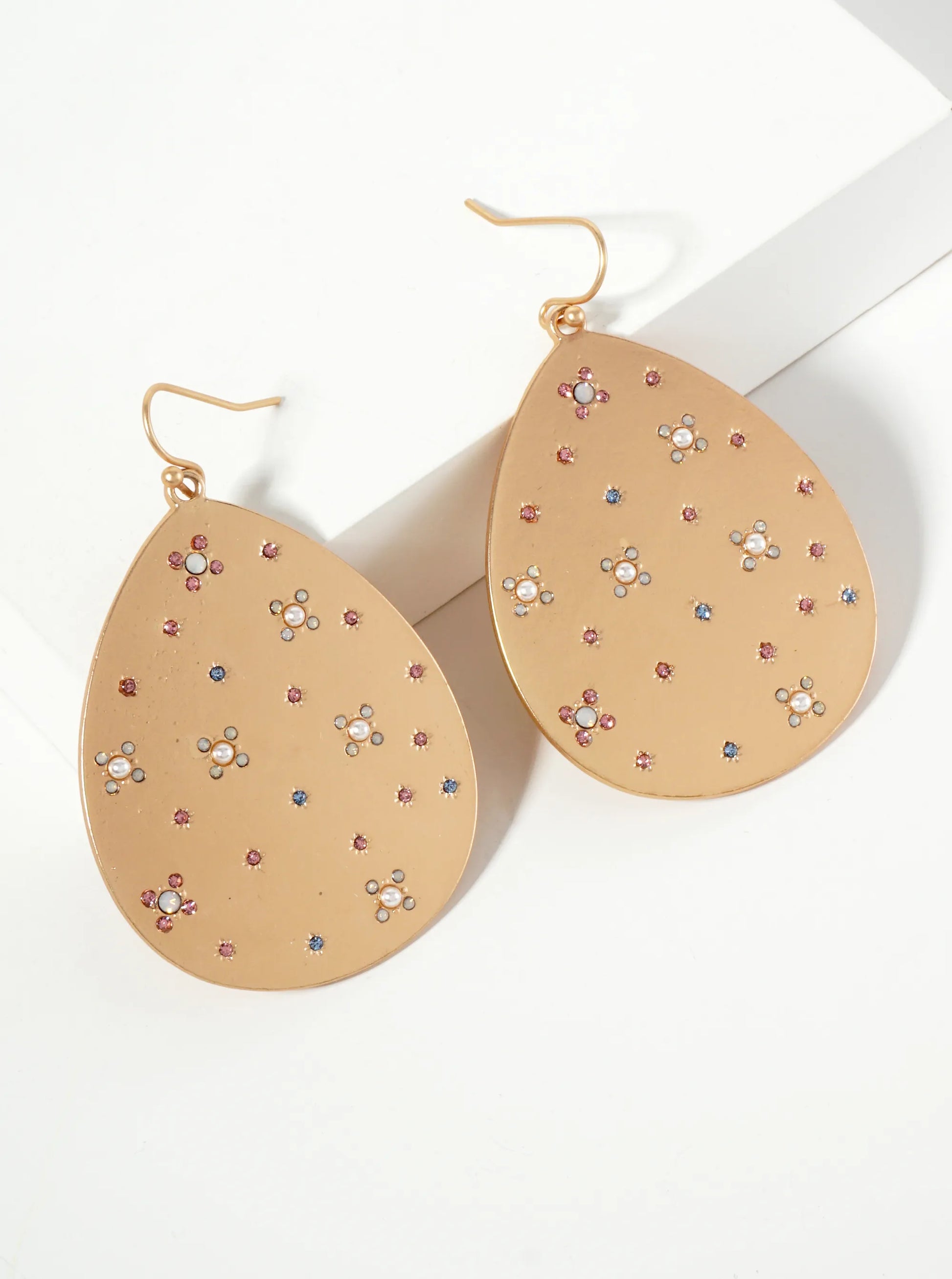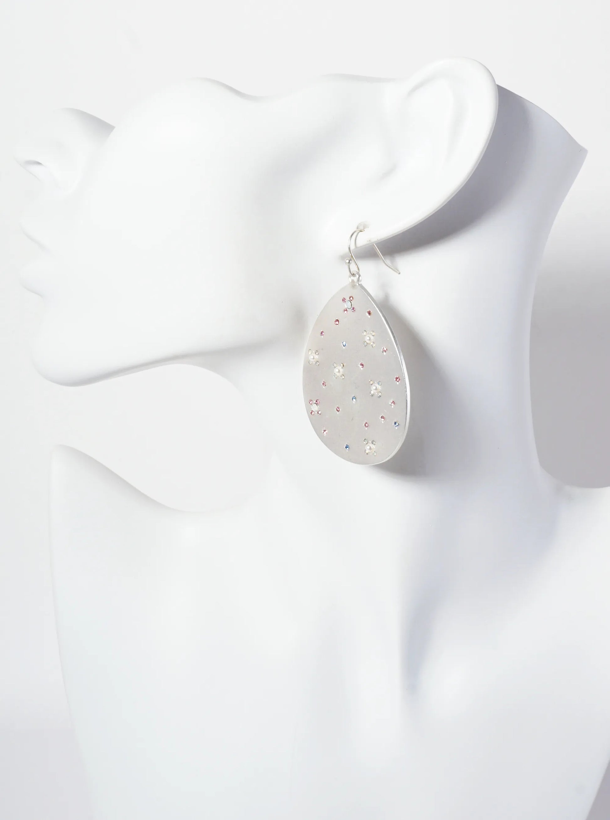 The Earrings Are A Stunning Blend Of Cosmic Elegance And Sparkling Beauty. These Earrings Feature A Teardrop Shape Adorned With Shimmering Crystal-pave Detailing, Creating A Celestial-inspired Design That Captures The Light From Every Angle. The Crystals Add A Radiant Sparkle, Reminiscent Of Stars Glimmering In The Night Sky. The Dangle Style Gives The Earrings Graceful Movement, Making Them Eye-catching With Every Turn. Perfect For Adding A Touch Of Glamour And Celestial Charm, These Earrings Are Ideal For Special Occasions Or Evening Wear, Offering A Sophisticated And Ethereal Look.