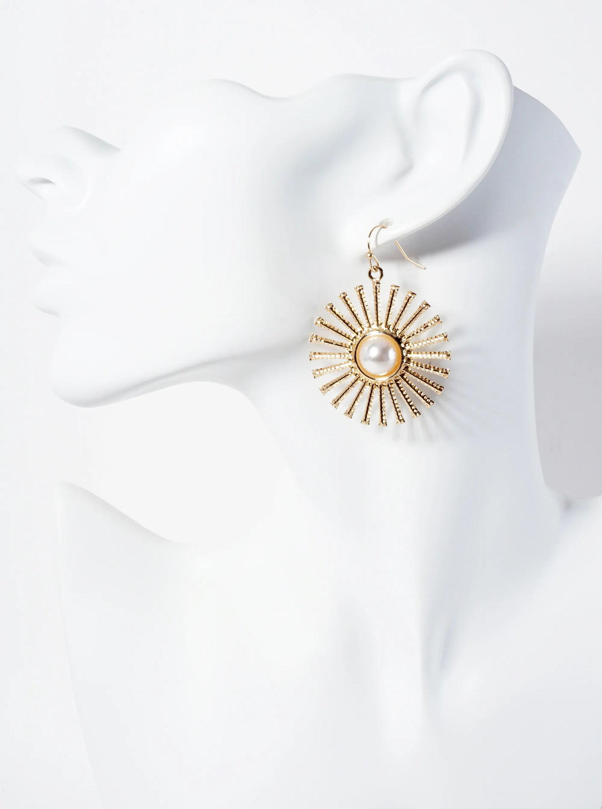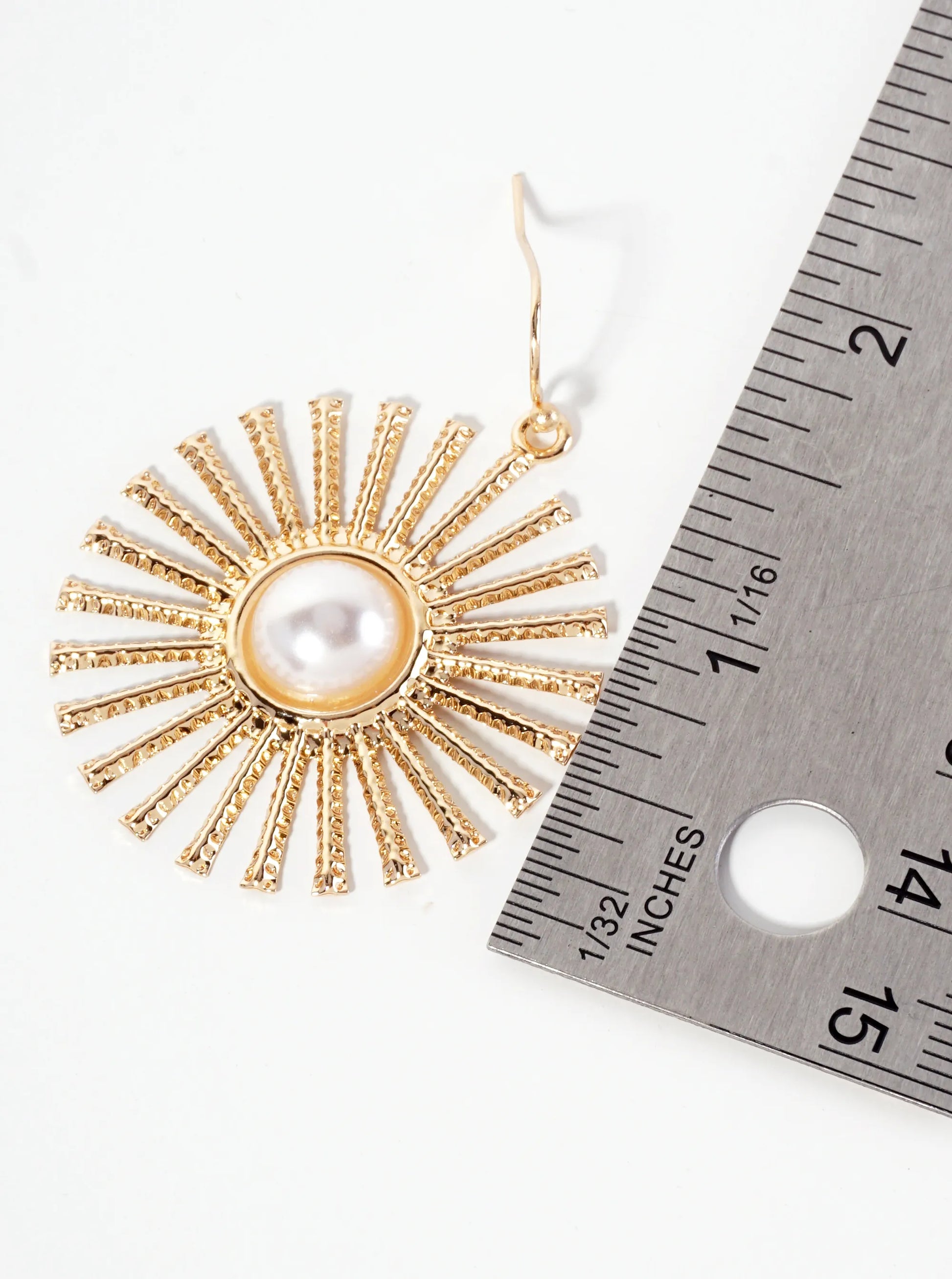 Celestial-theme Textured Starburst Pearl Drop Dangle Earrings