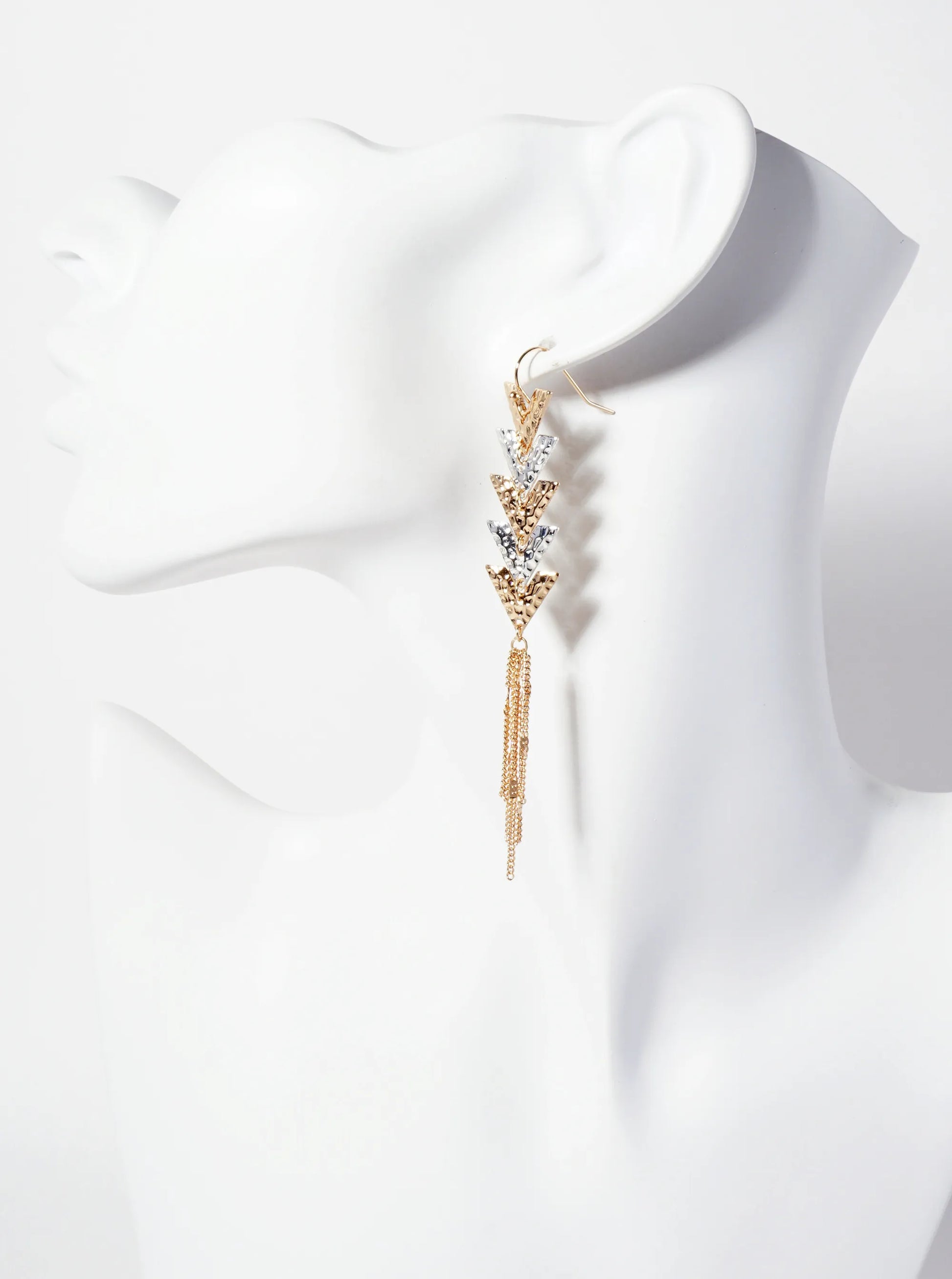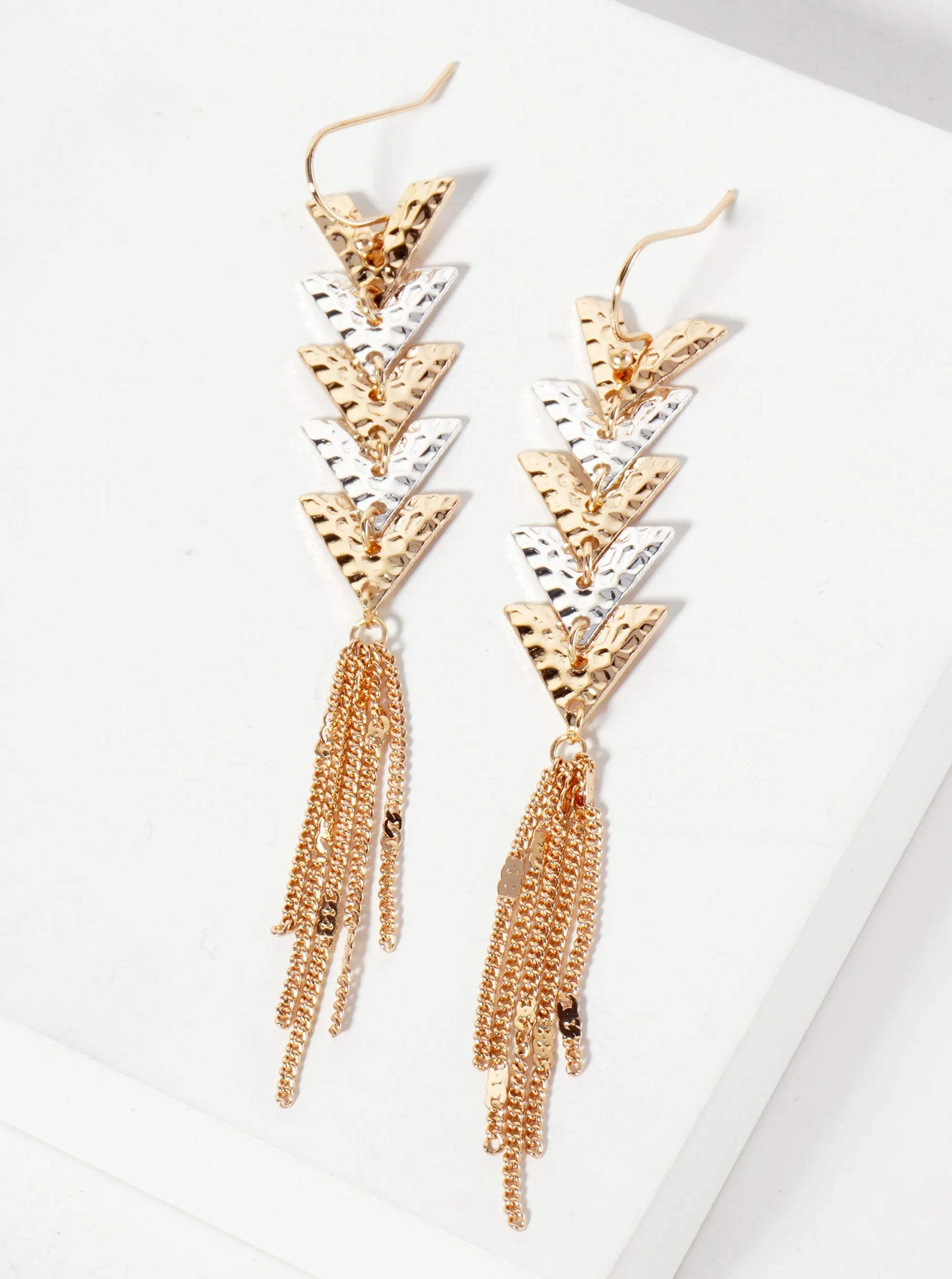 Chain Drop Hammered-Texture Chevron Dangle Earrings