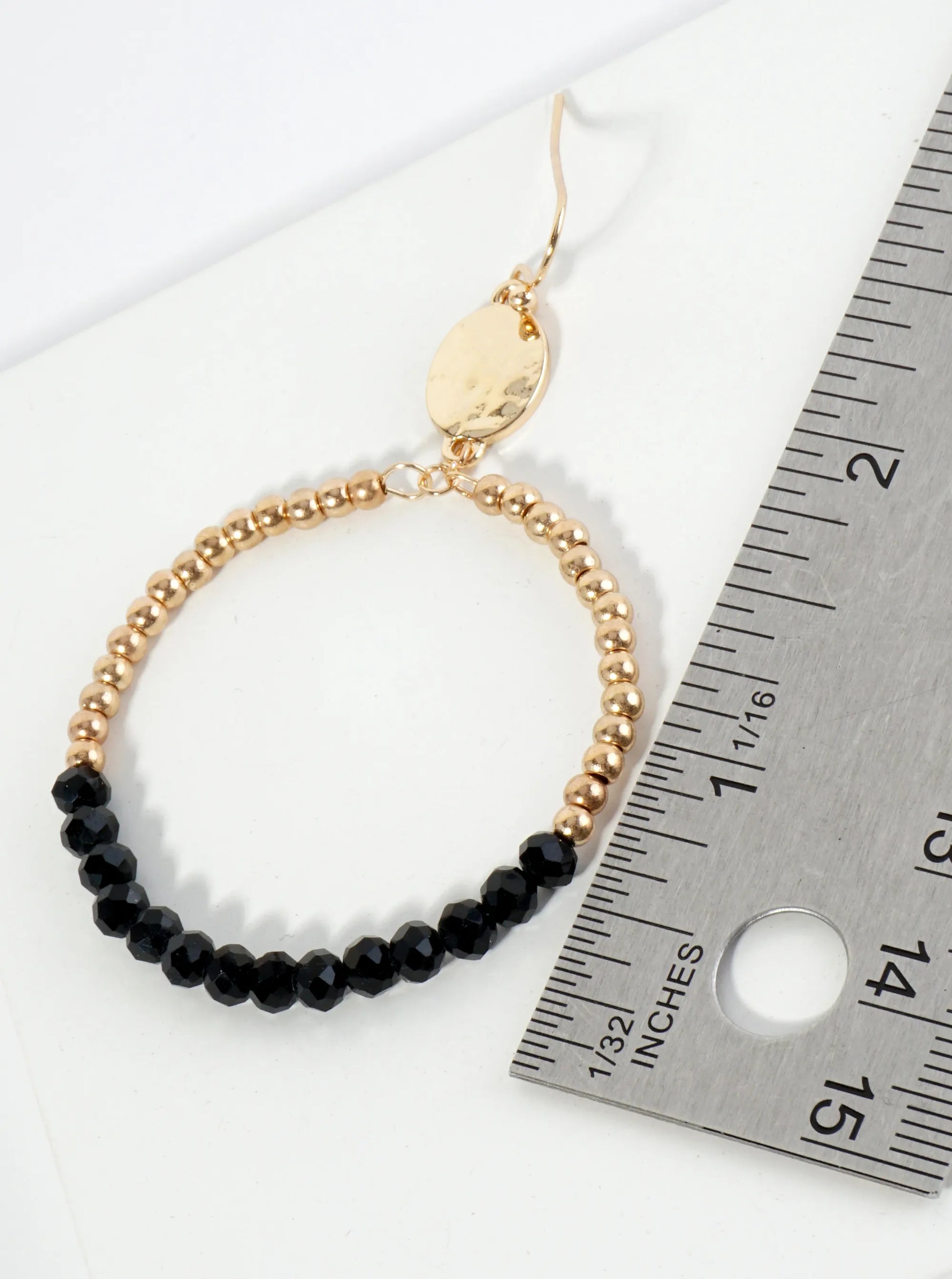 Circle Drop Earrings Wrapped In Glass Beads And Metallic Beads