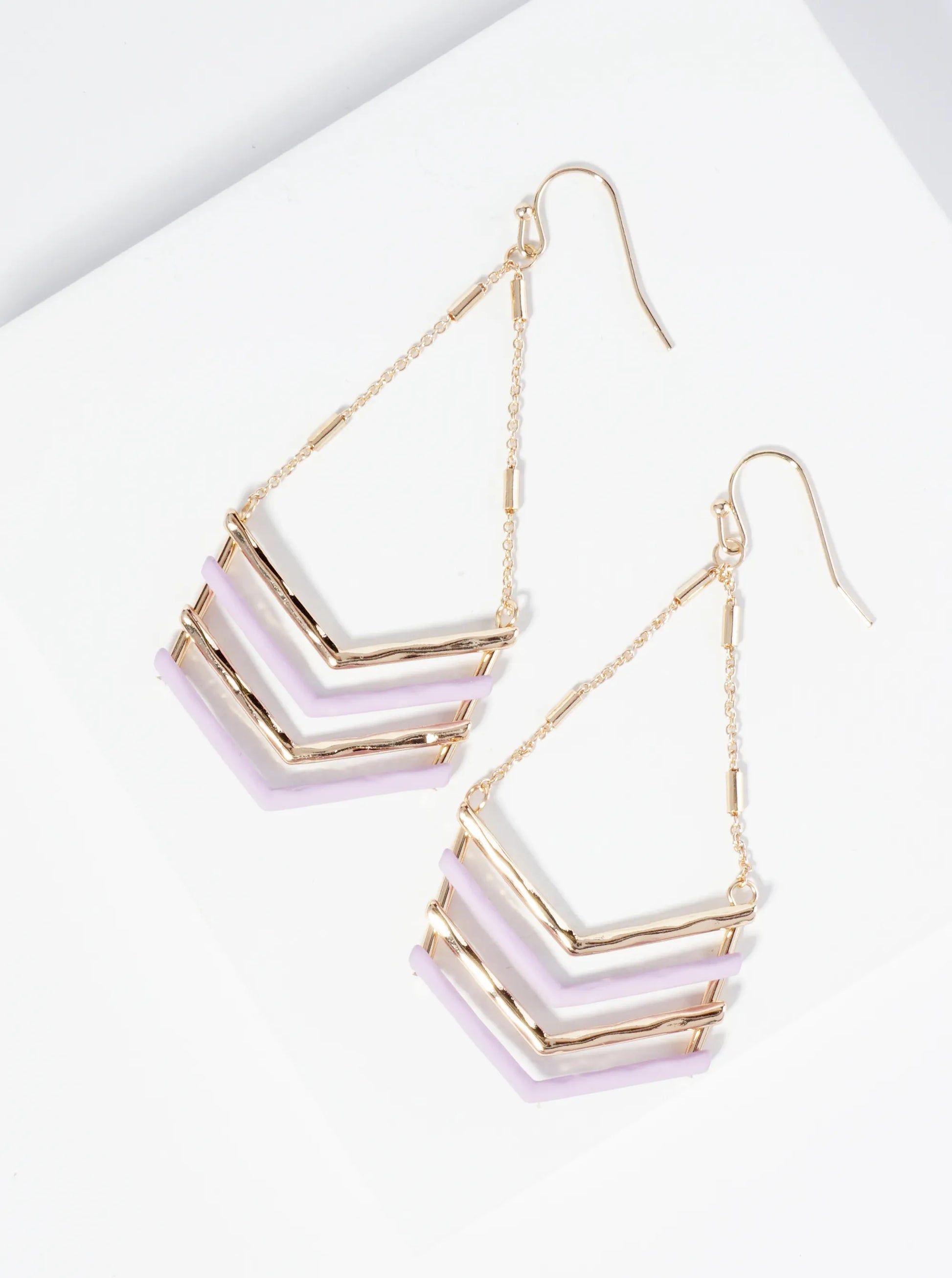 These Earrings Feature Sleek, Arrow-shaped Pendants Coated In Vibrant Colors, Suspended From Delicate Chains. The Design Combines Bold Geometric Shapes With A Touch Of Elegance And Movement, Creating A Modern, Eye-catching Accessory.