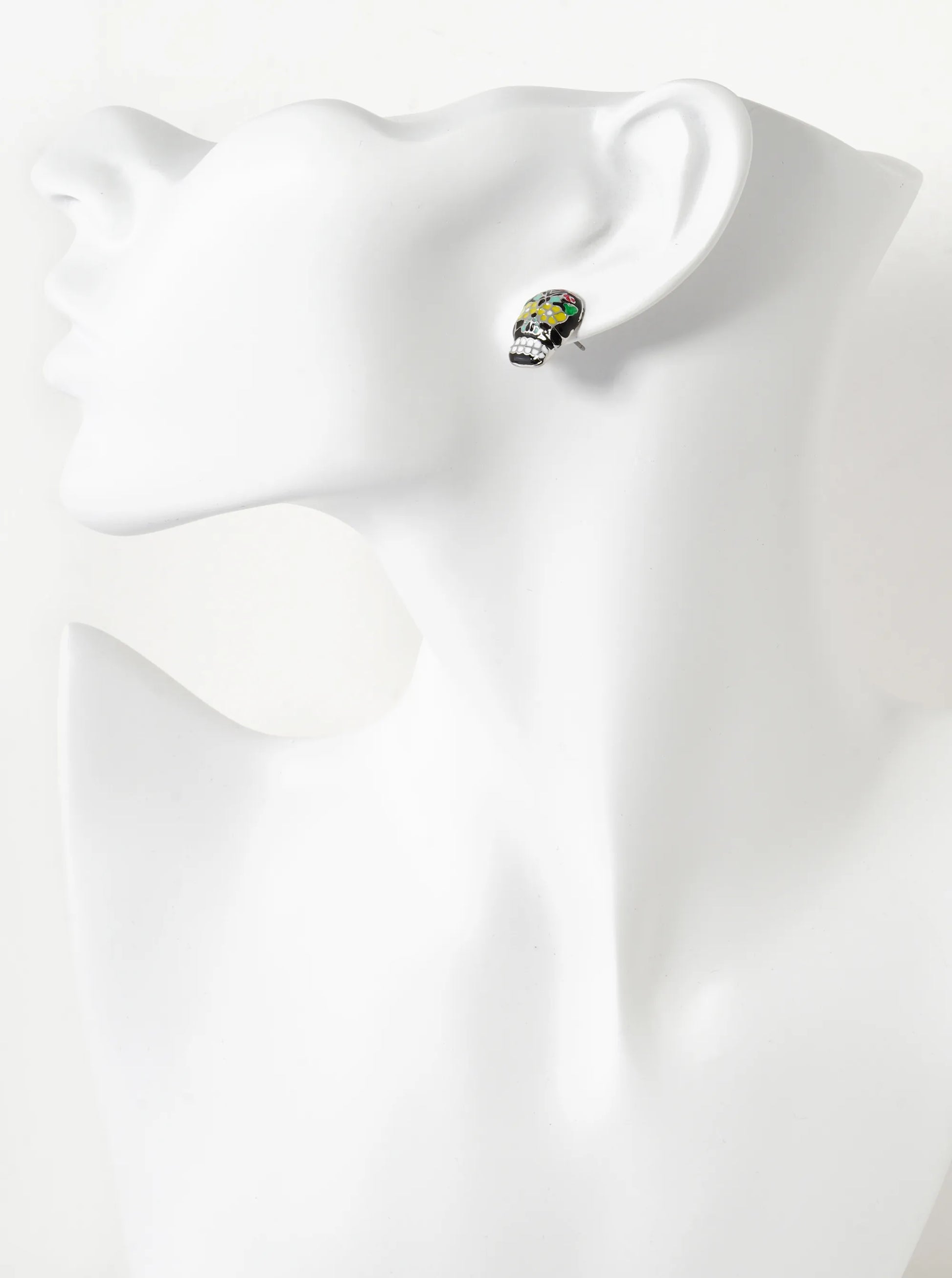 These Stud Earrings Showcase Colorful Enamel Skull Head Designs Adorned With Vibrant Flower Details, Blending Edgy Style With Artistic Flair. With A Diameter Of 15mm, They Are Striking Accessories, Perfect For Adding A Bold And Playful Touch To Any Ensemble.