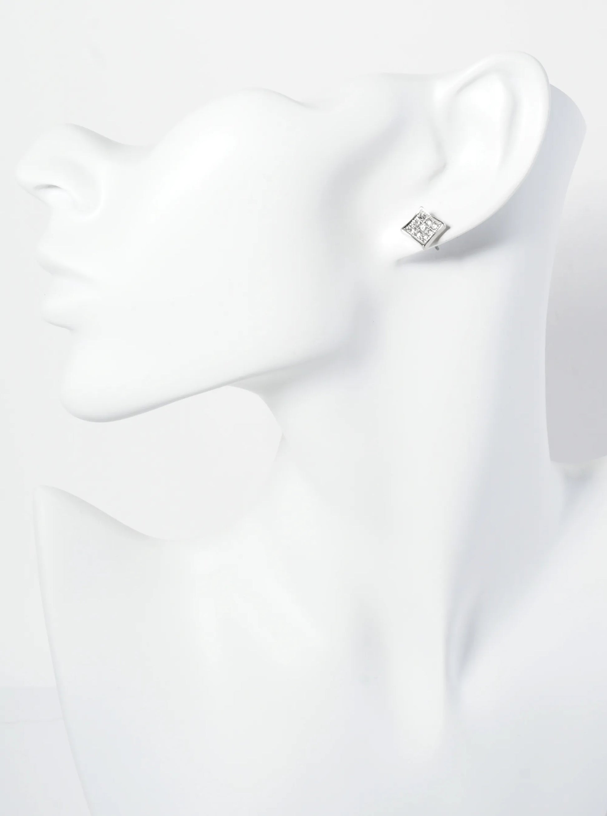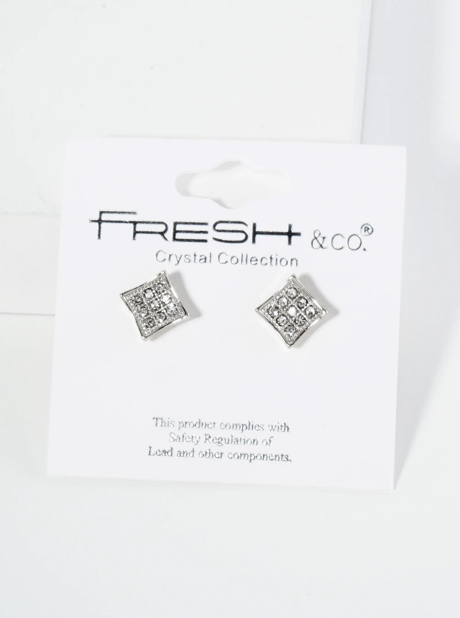 Crystal Pave 10mm Diamond Shape Stud Earrings