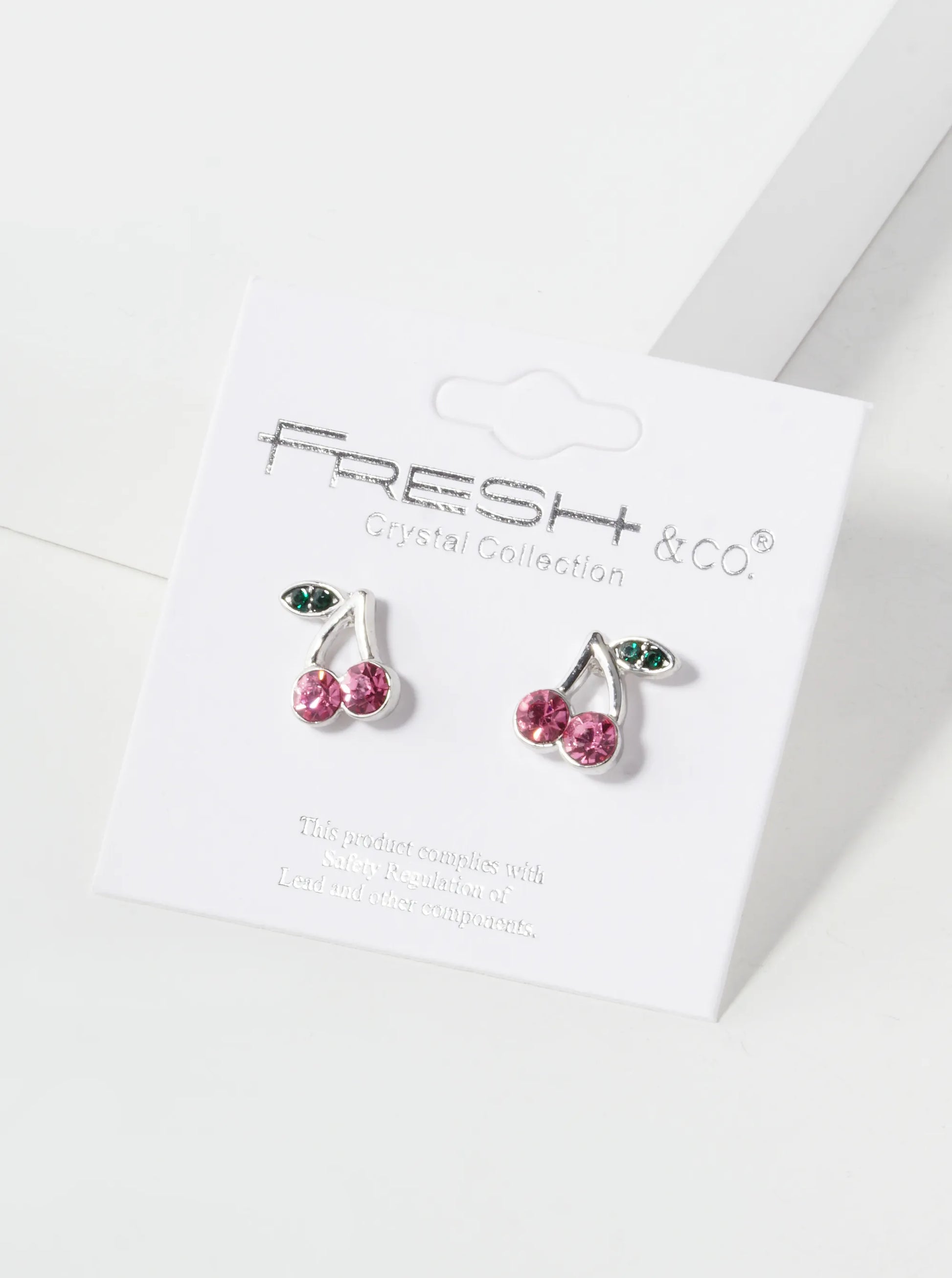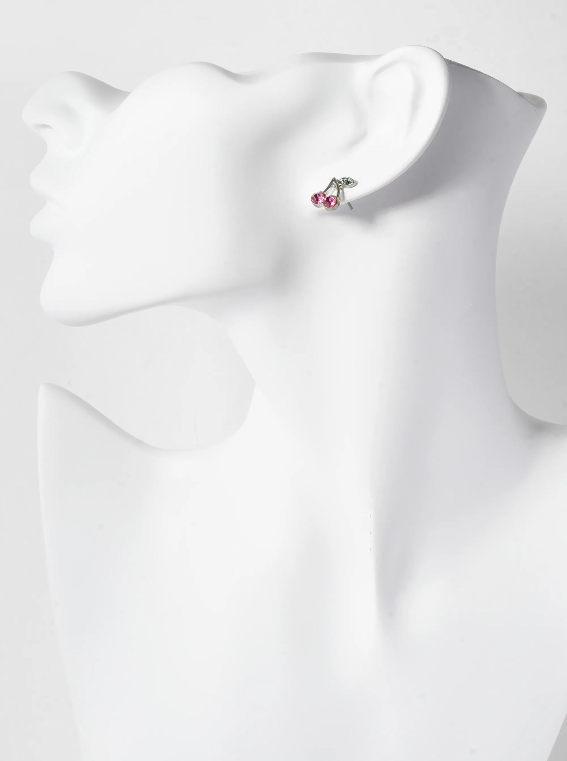 These Earrings Are Petite Earrings Featuring Cherry-shaped Studs Adorned With Small Crystals Set In A Pave Style. These Earrings Add A Subtle Sparkle And Whimsical Charm To Any Outfit. They're Worn As Delicate Accessories, Perfect For Those Who Appreciate Understated Yet Playful Jewelry Designs.