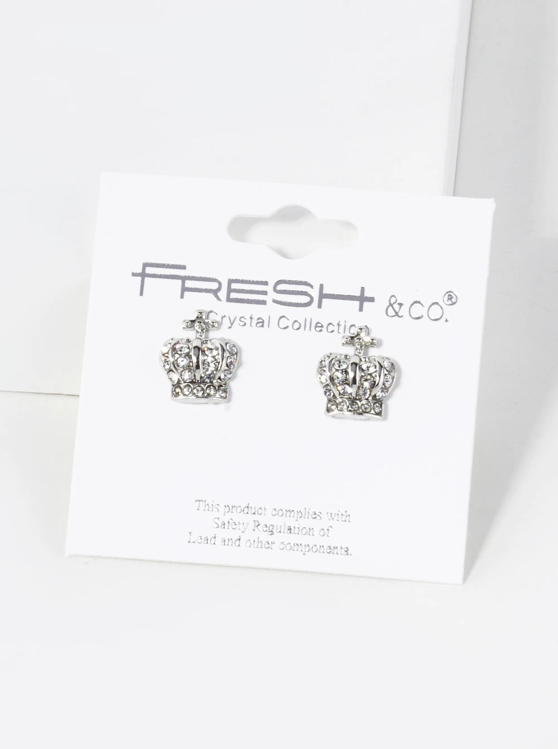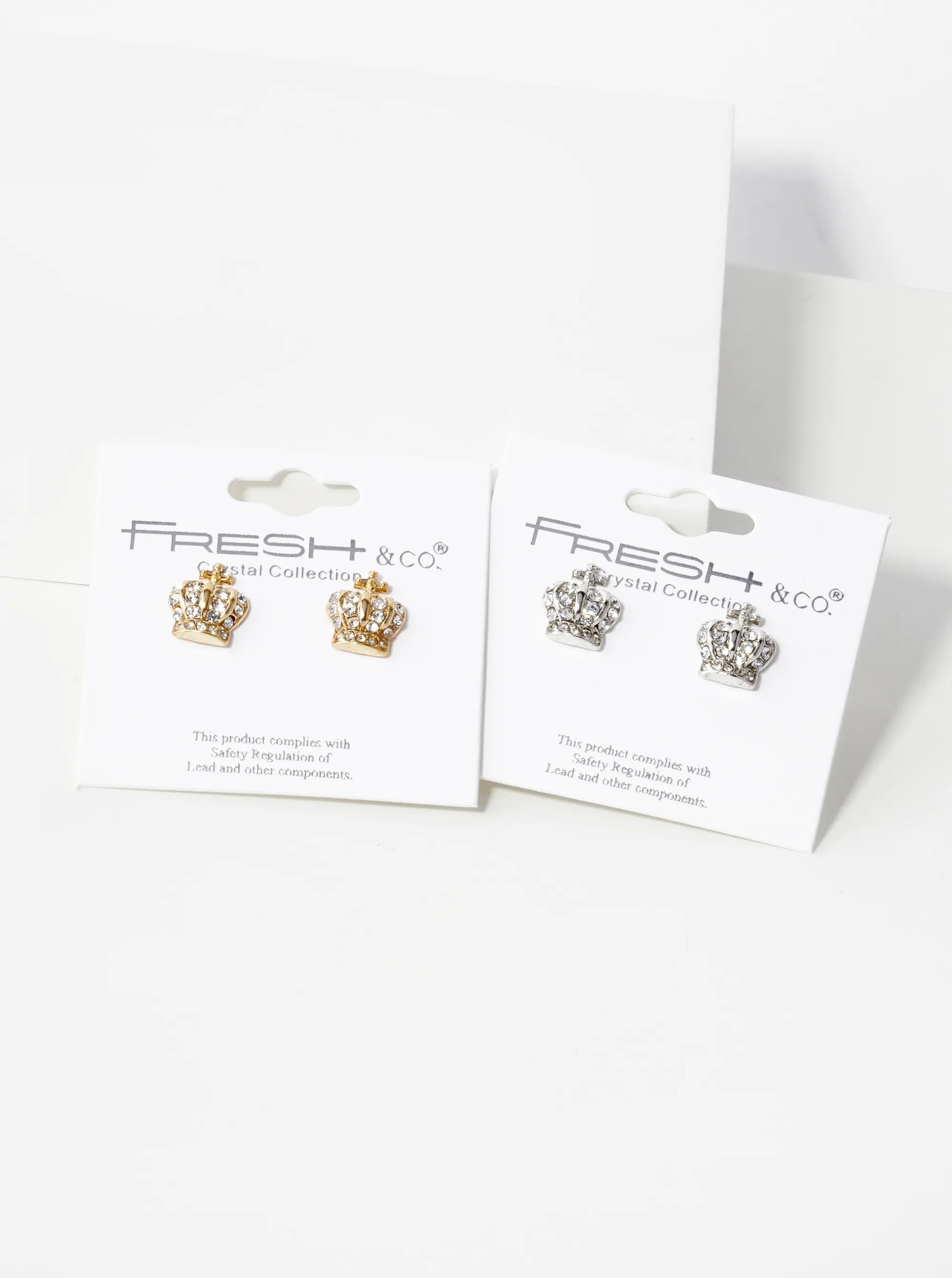 Crystal Pave 12mm Catholic Crown Stud Earrings