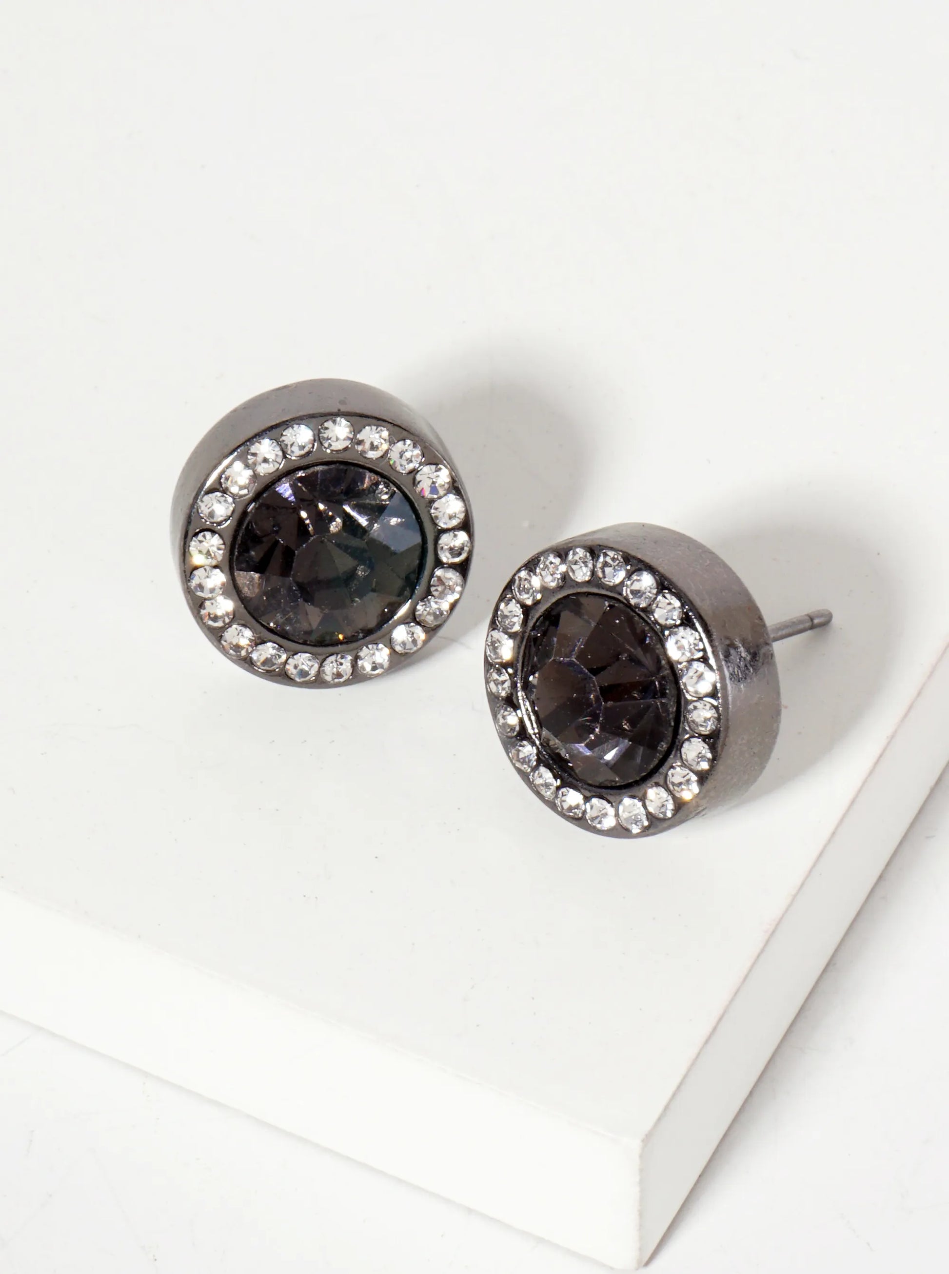 Crystal-Pave 12mm Stone Button Stud Earrings