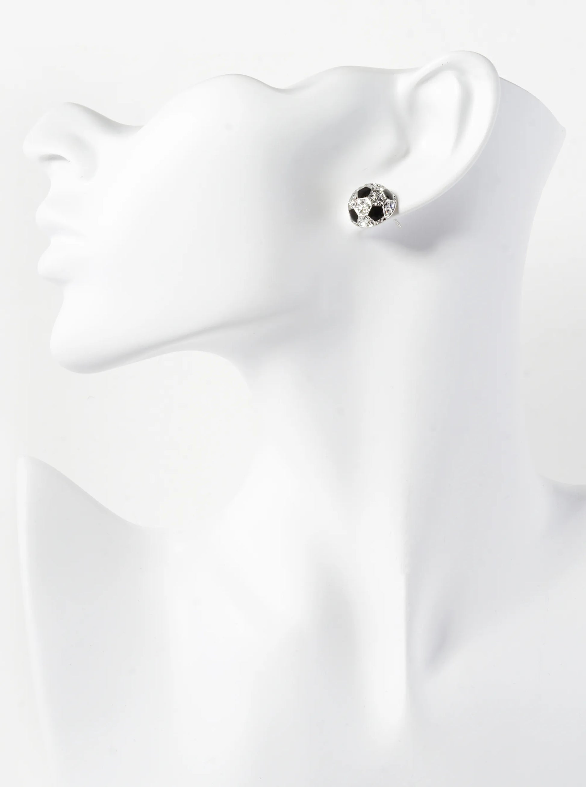 Crystal Pave 13mm Half Circle Soccer Ball Stud Earrings Strike A Perfect Balance Between Athleticism And Sophistication, Making Them An Excellent Choice For Soccer Enthusiasts Or Anyone Looking To Add A Touch Of Sparkle To Their Ensemble With A Nod To The Sport.