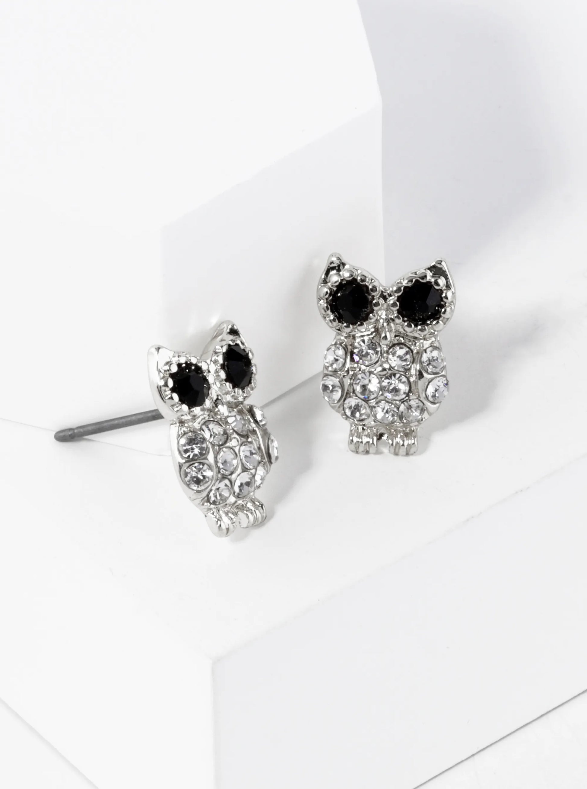 Crystal Pave 13mm Owl Spiritual Stud Earrings