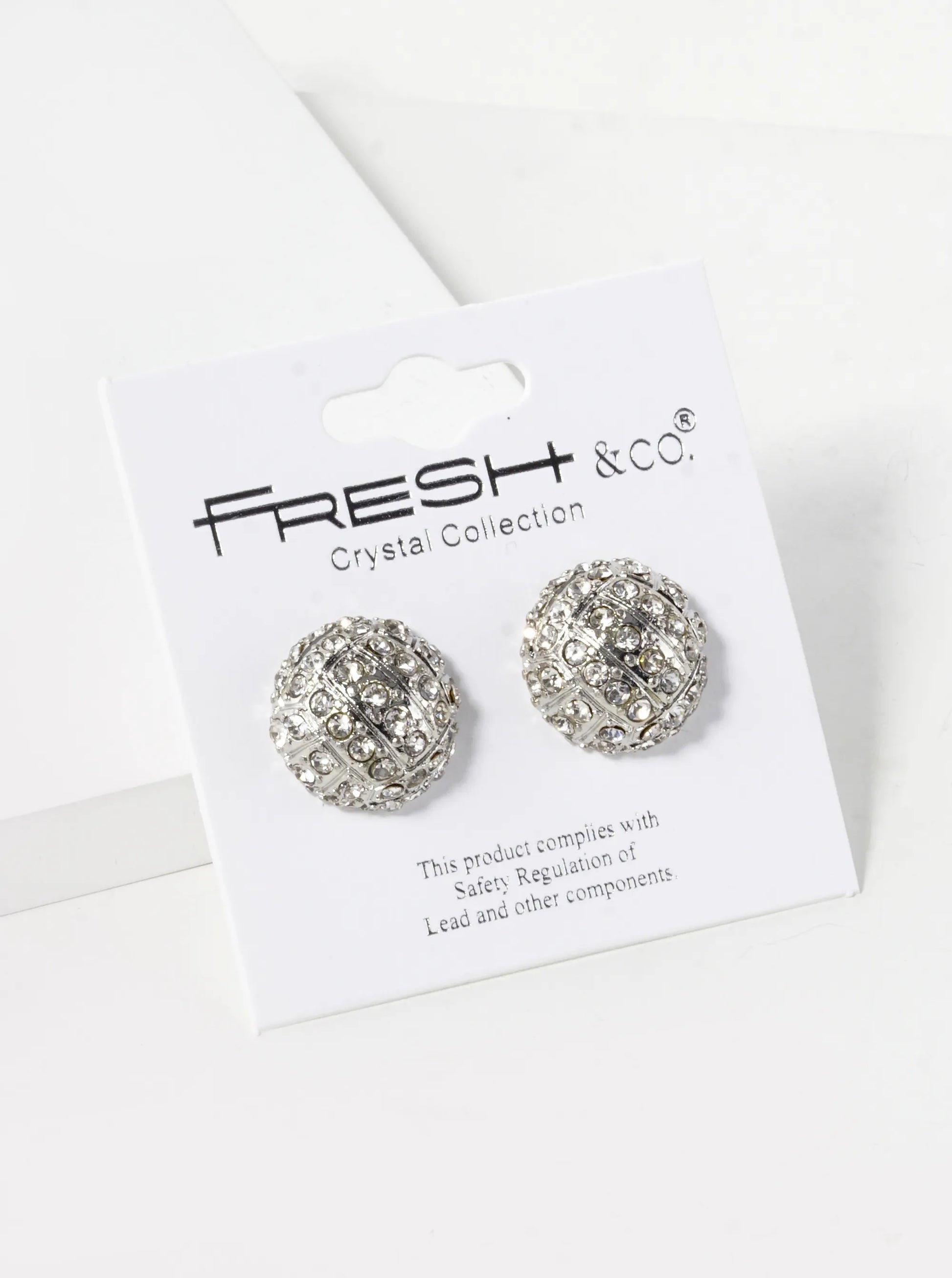 Crystal Pave 15mm Half Circle Volleyball Stud Earrings