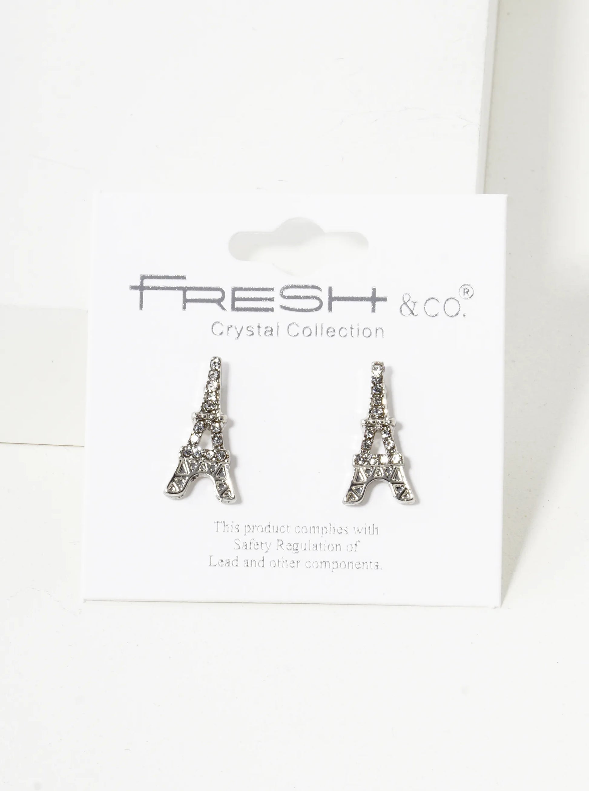 Crystal Pave 17mm Eiffel Tower Stud Earrings