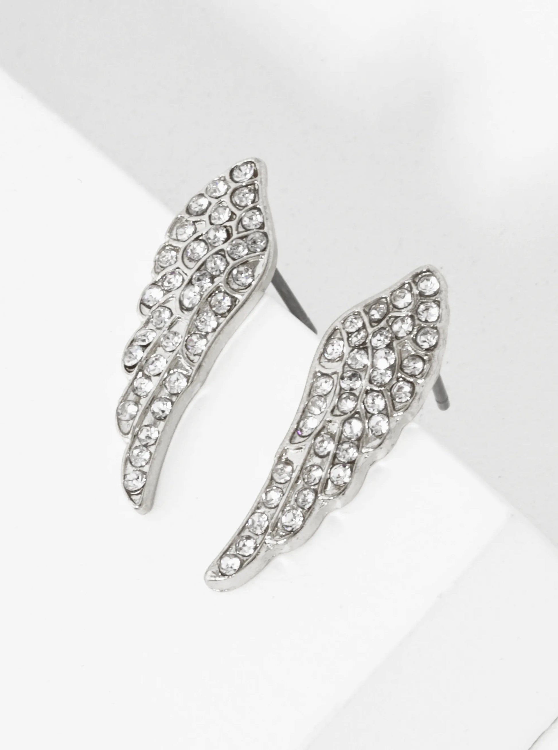 Crystal Pave 22mm Angel Wings Stud Earrings